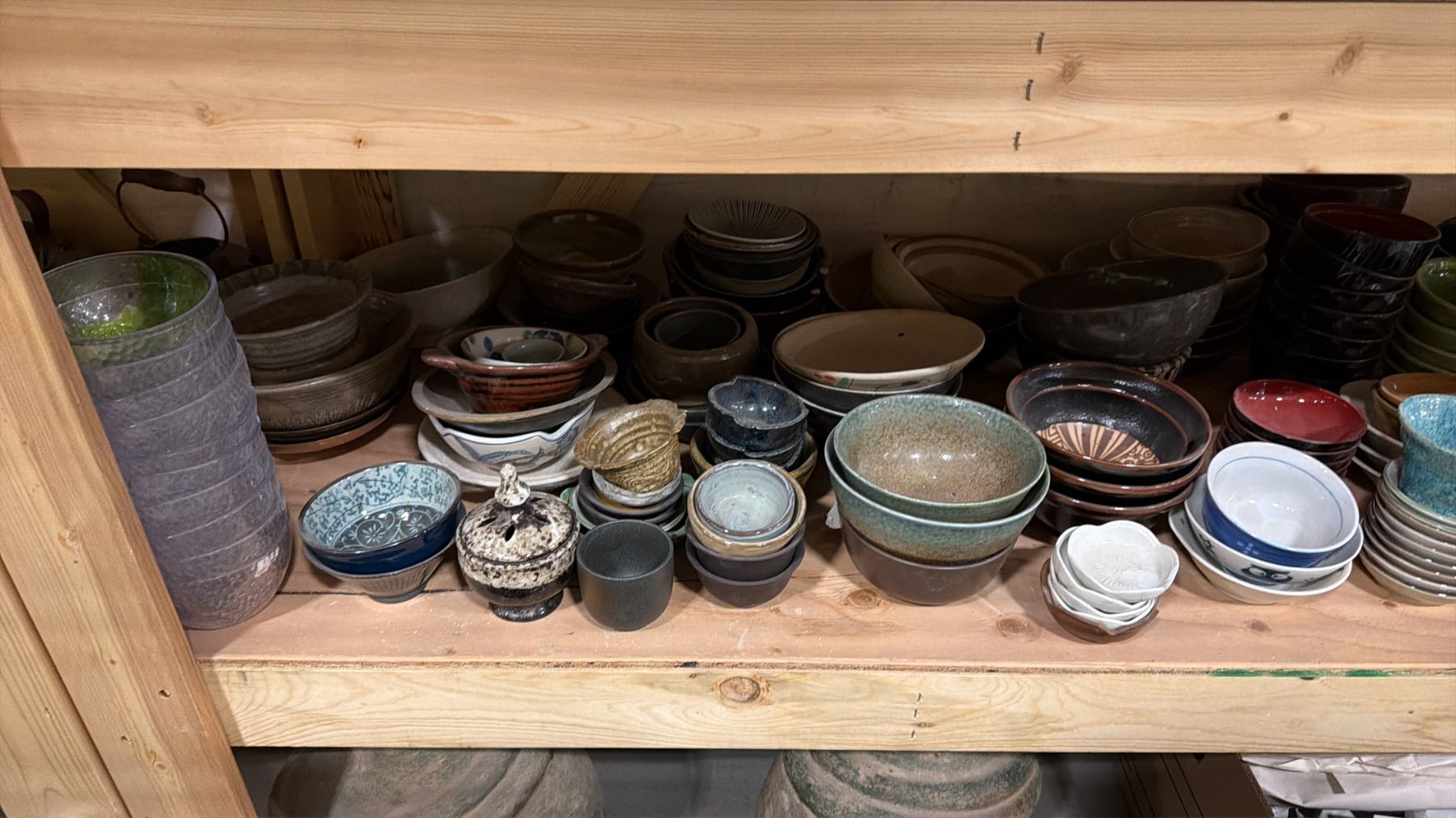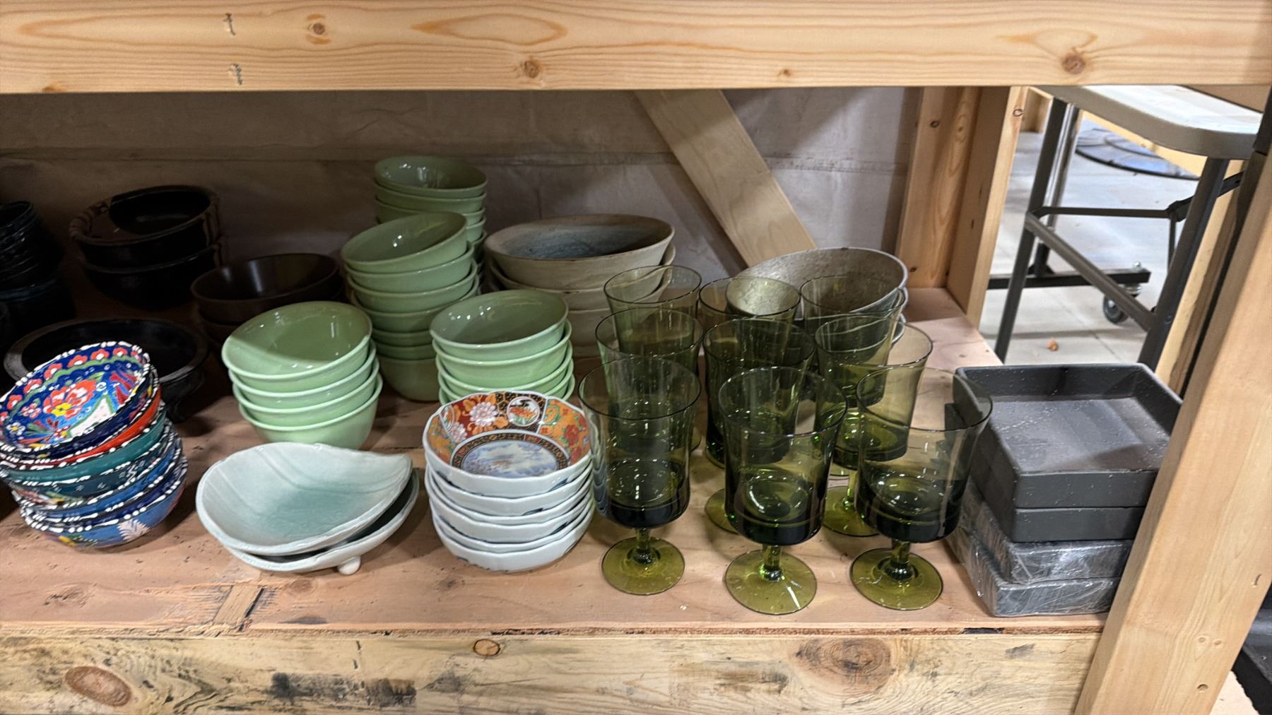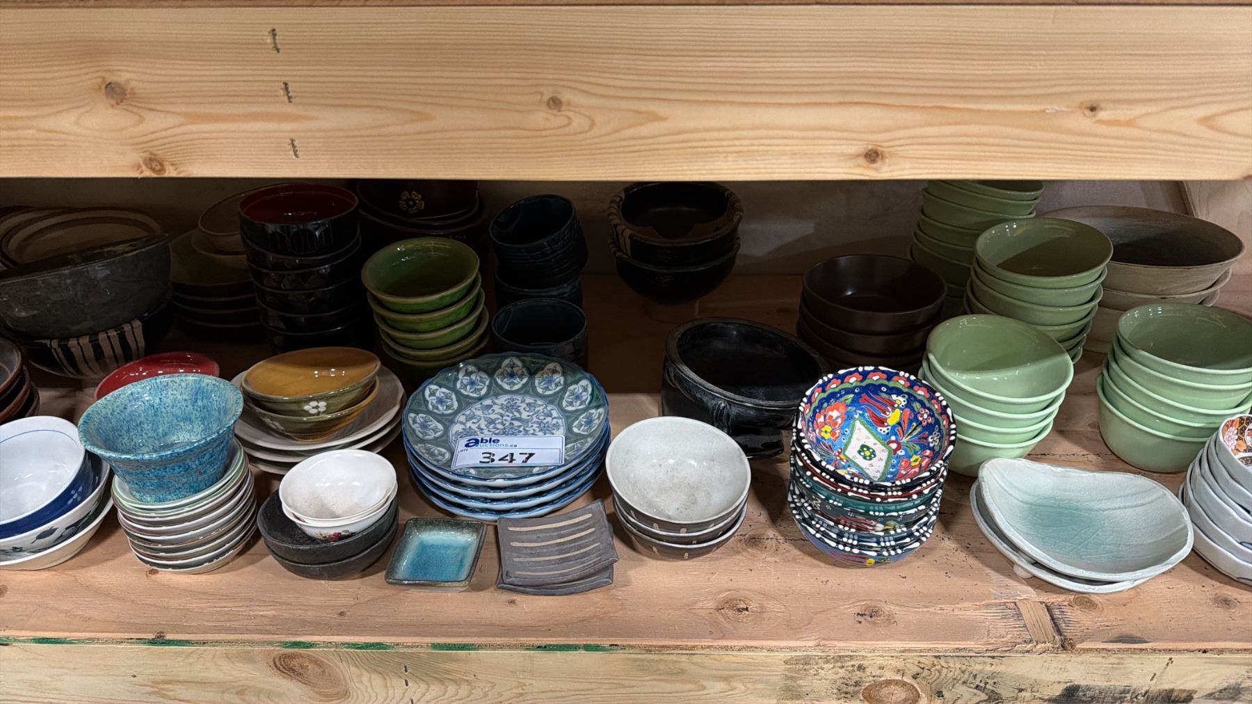 SHELF OF ASSORTED DECORATIVE DISHWARE