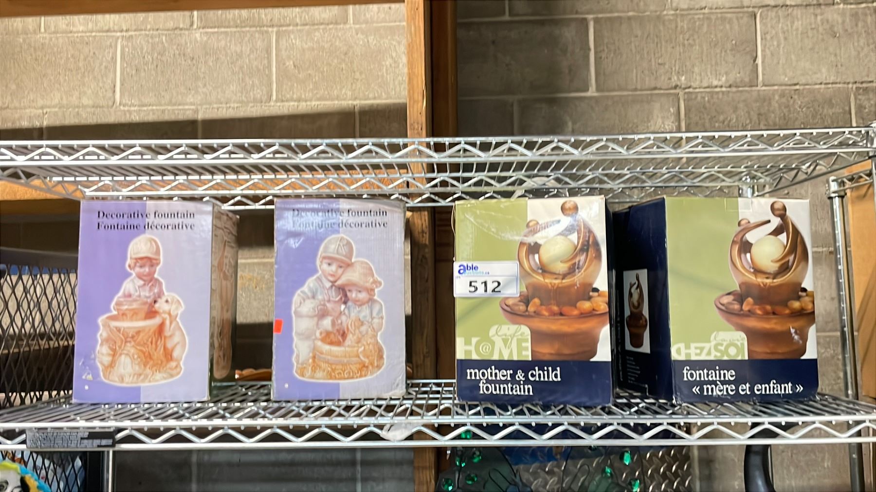 SHELF OF ASSORTED DECORATIVE FOUNTAINS