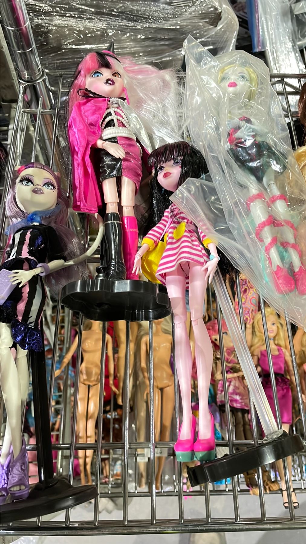 SHELF OF ASSORTED DOLLS INCLUDING; BARBIE, EVER AFTER HIGH, MONSTER HIGH & MORE