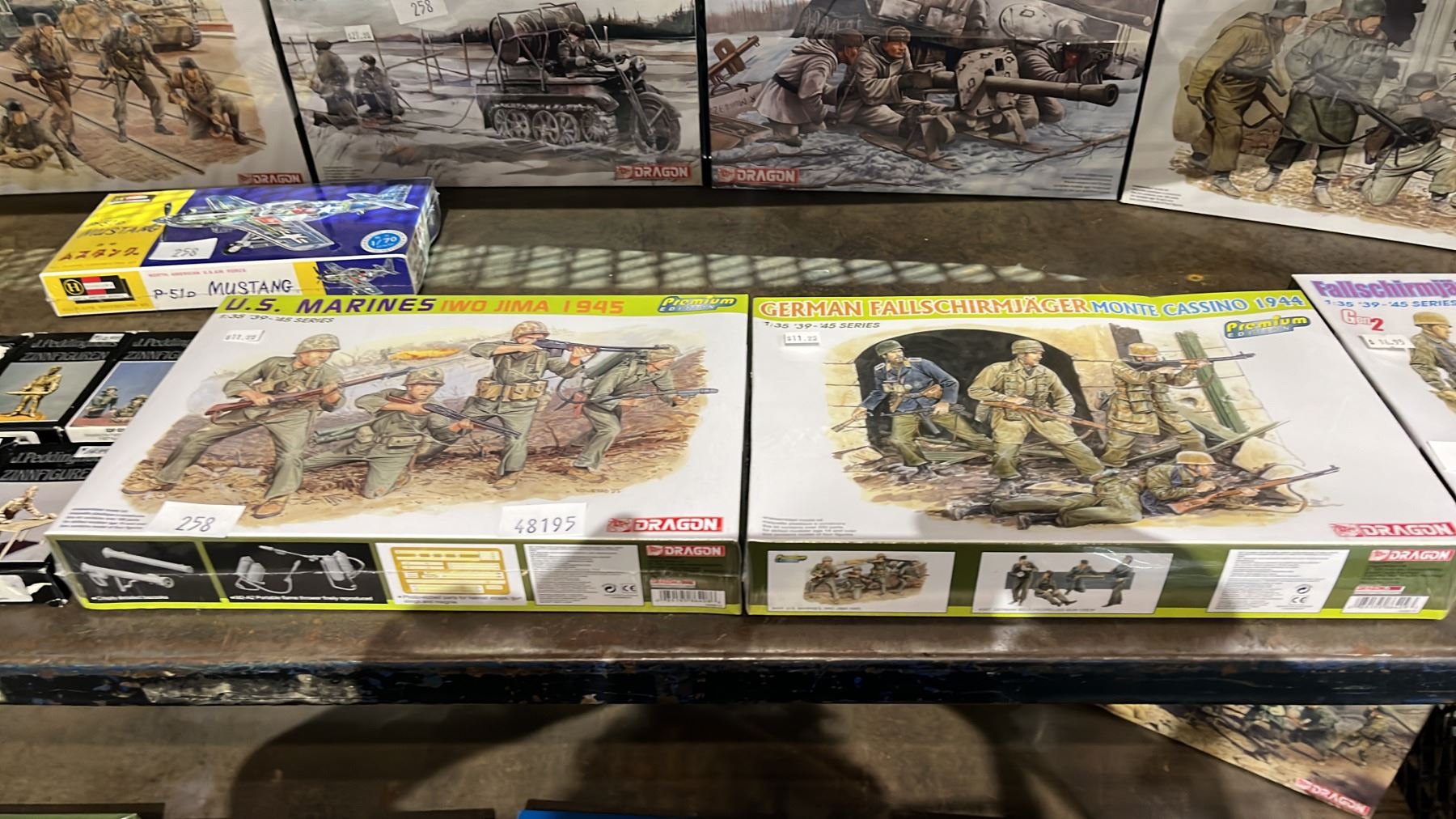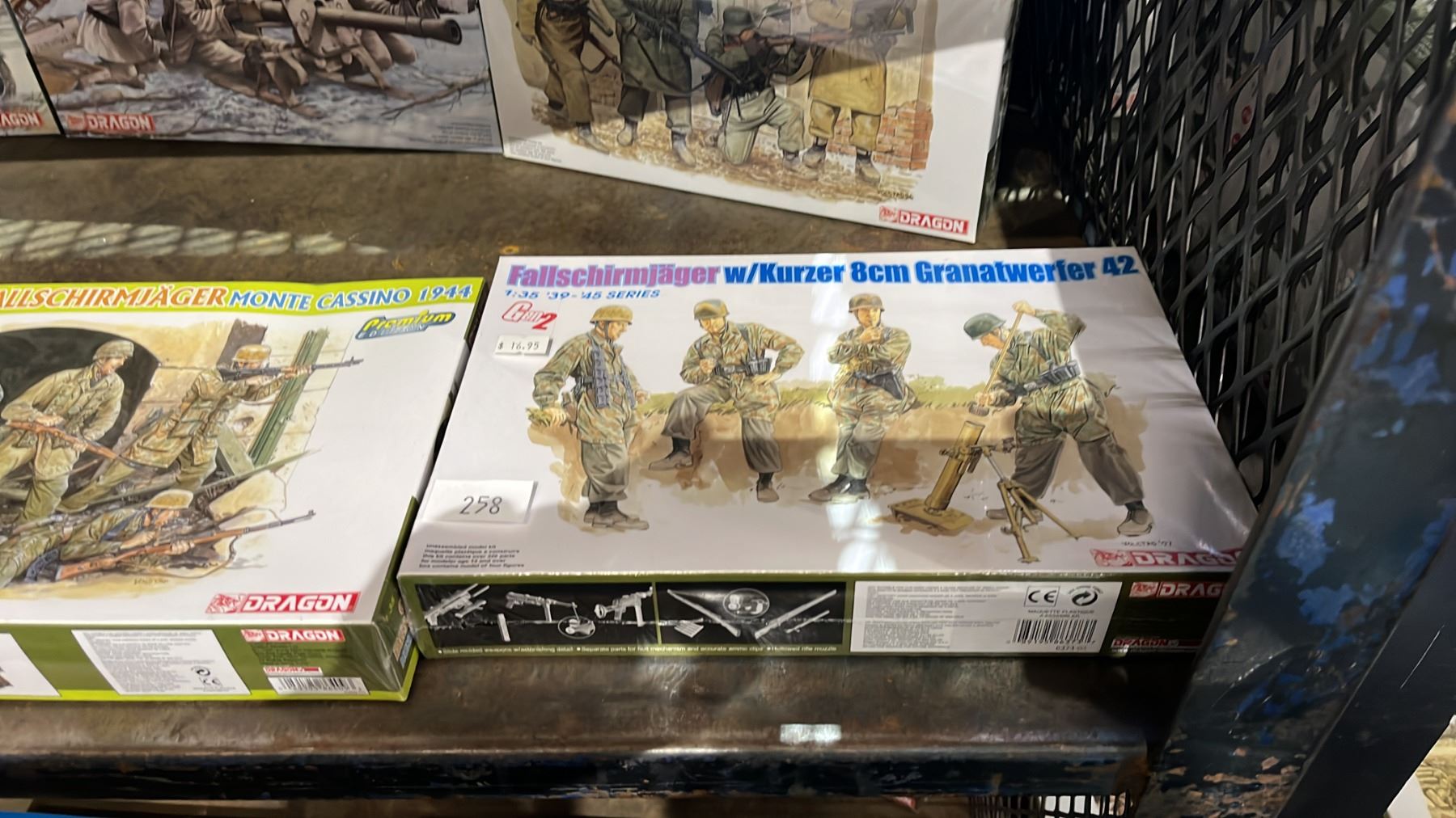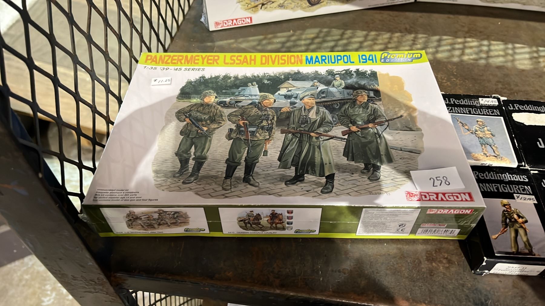 SHELF OF ASSORTED DRAGON FIGURE KITS & J. PEDDINGHAUS ZINNFIGUREN INDIVIDUALLY BOXED FIGURES *SOME IN SEALED BOXES*