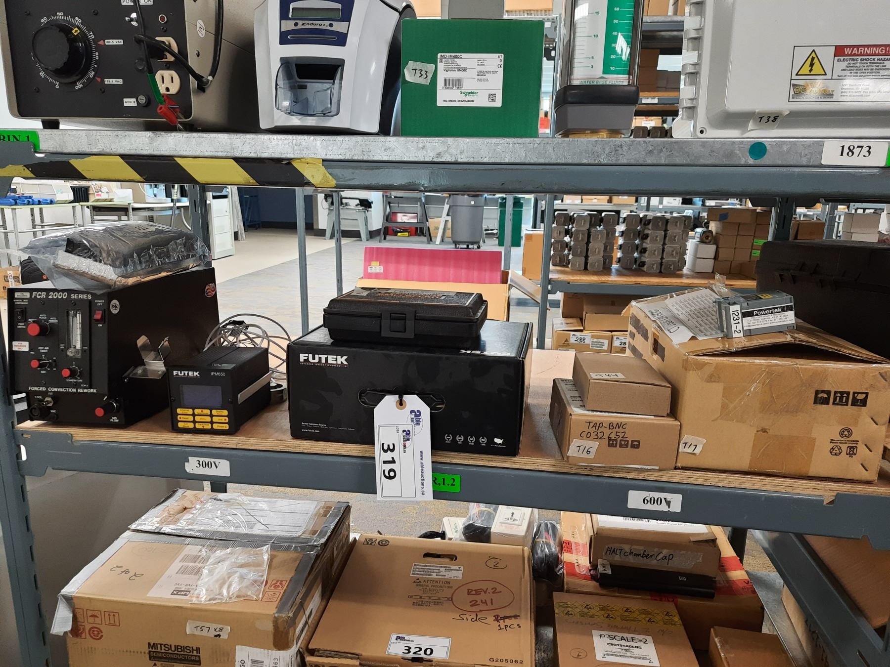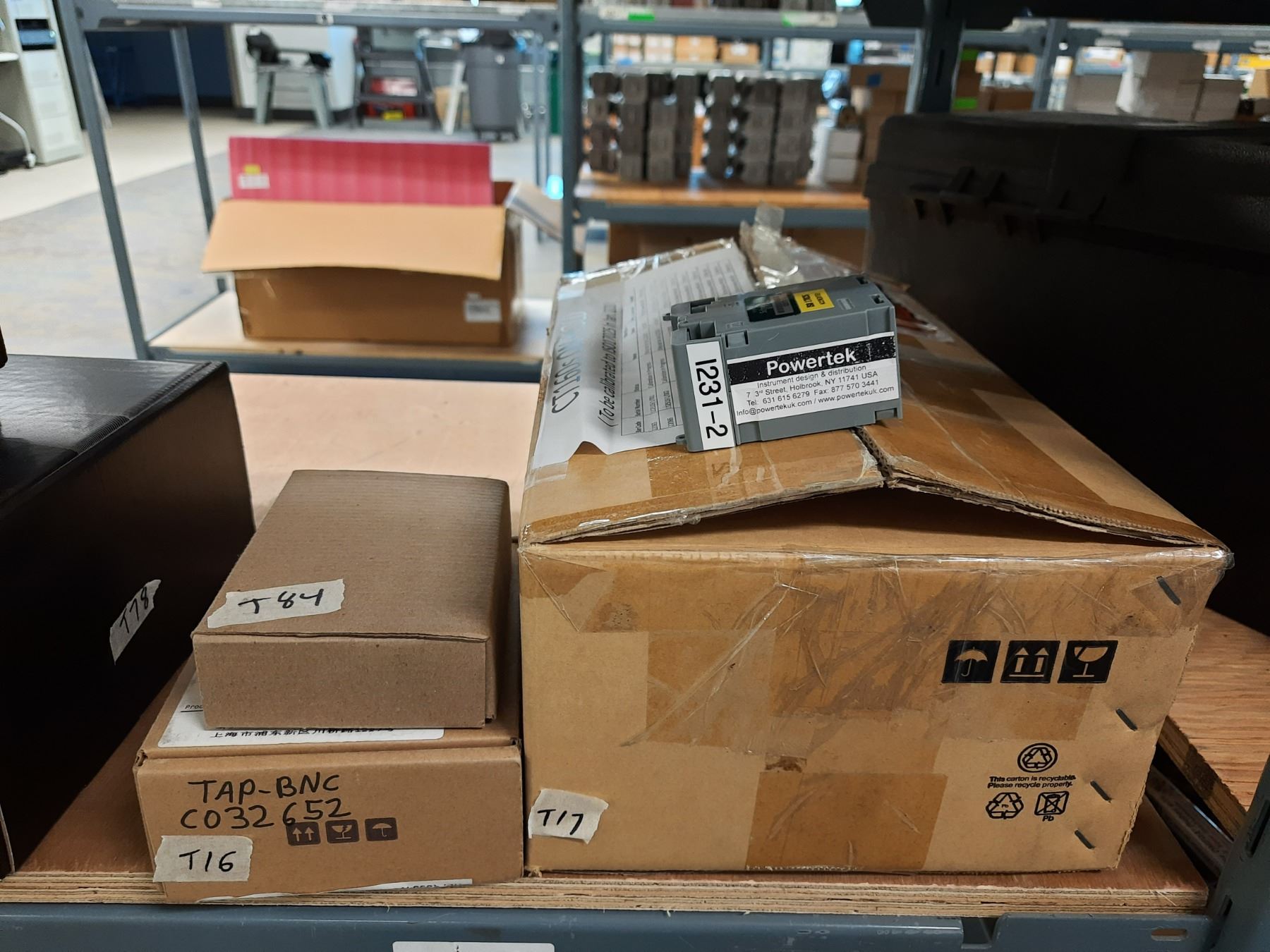 SHELF OF ASSORTED ELECTRICAL COMPONENTS AND HARDWARE