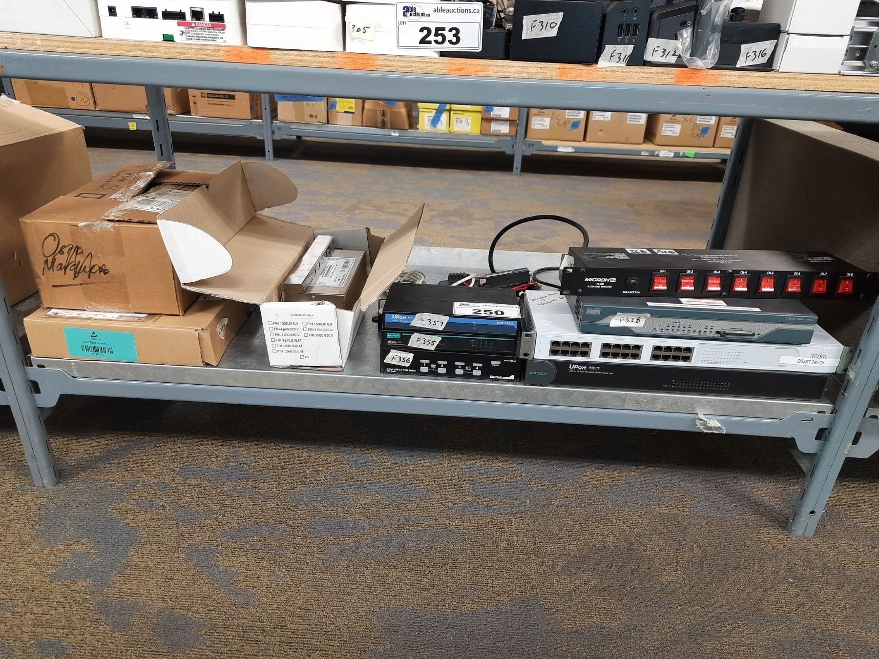 SHELF OF ASSORTED ELECTRICAL COMPONENTS