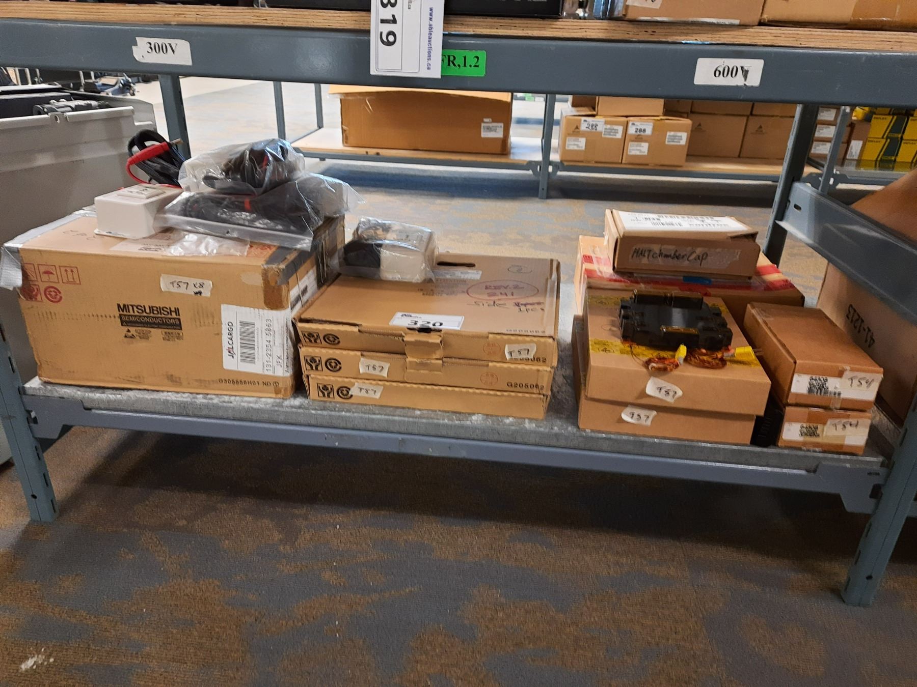 SHELF OF ASSORTED ELECTRICAL COMPONENTS