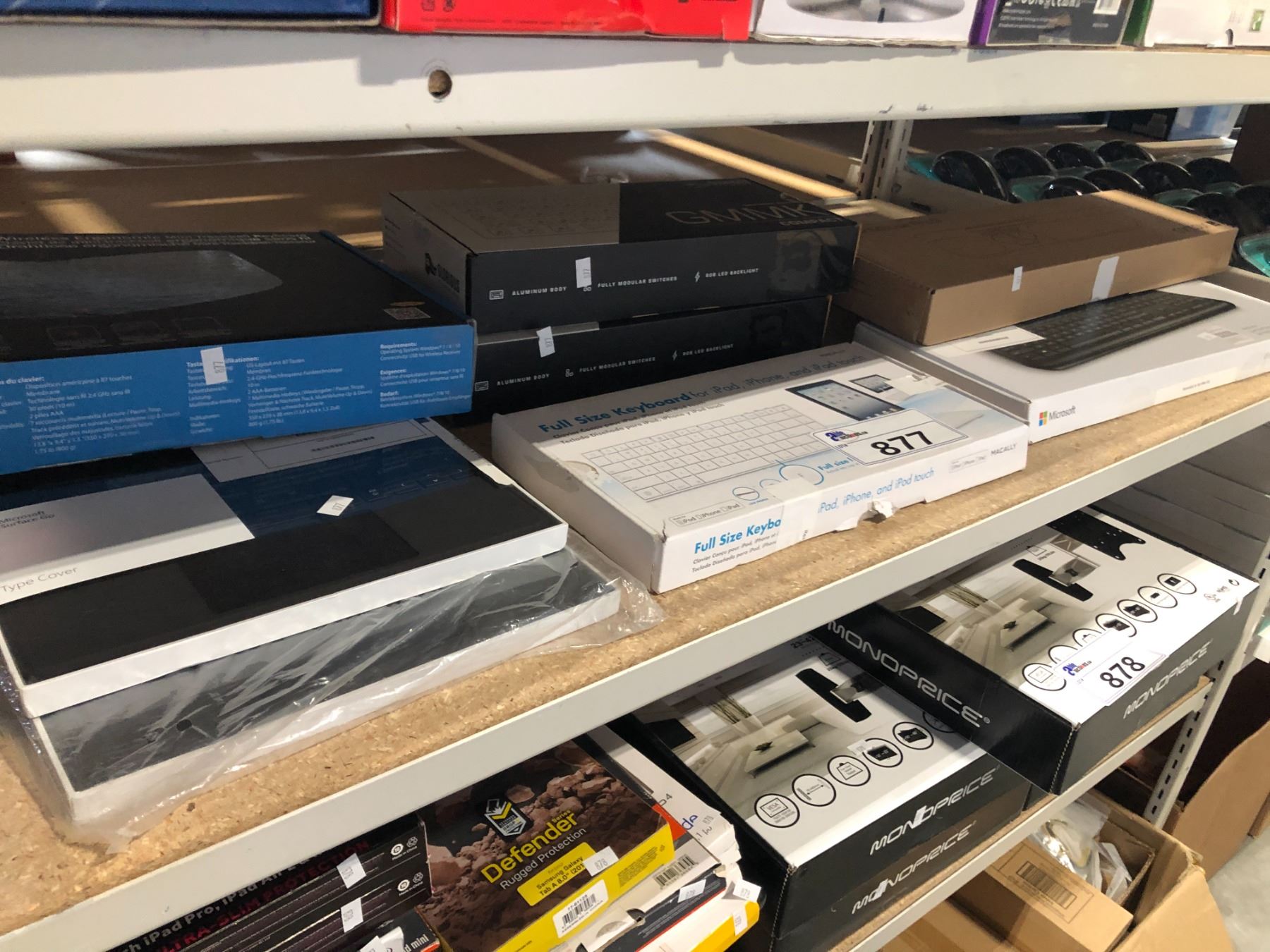 SHELF OF ASSORTED ERGONOMIC, WIRELESS & WIRED KEYBOARDS