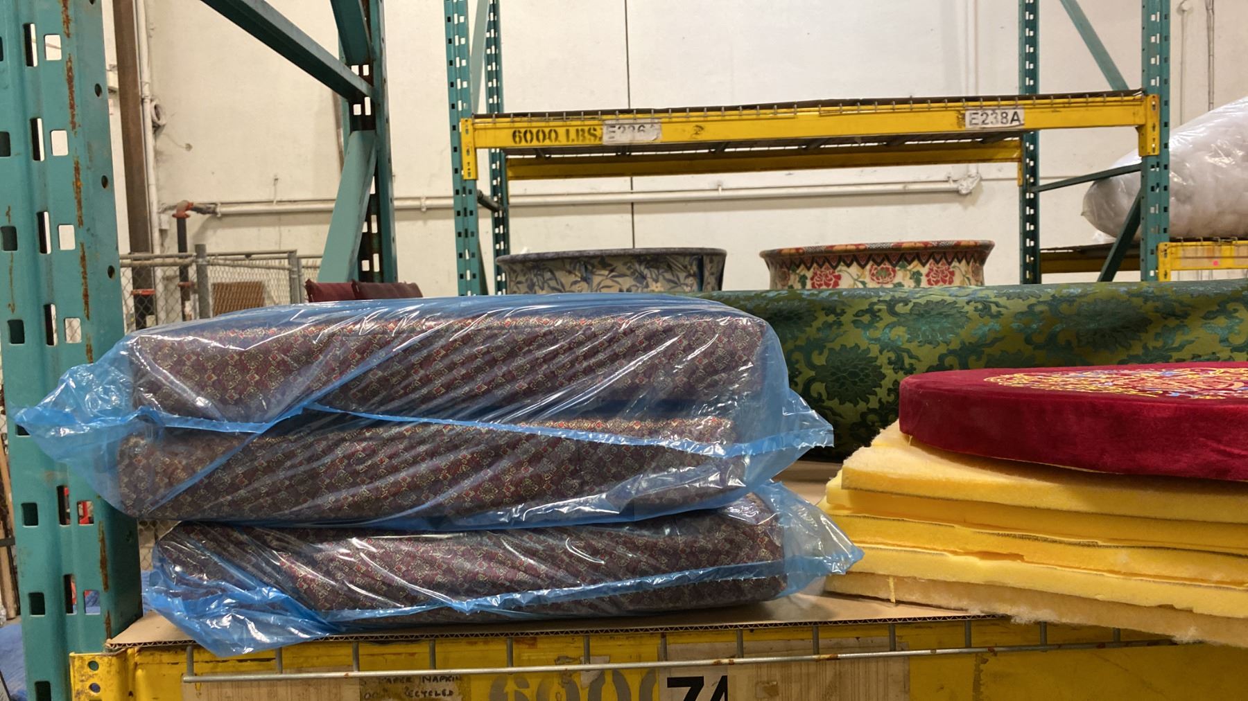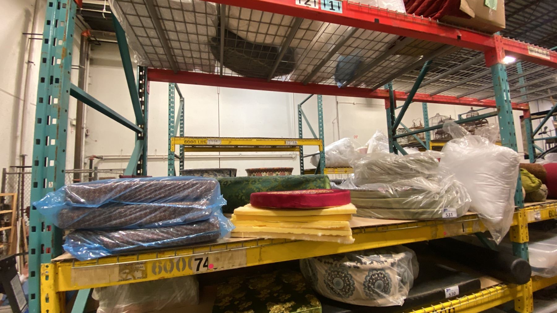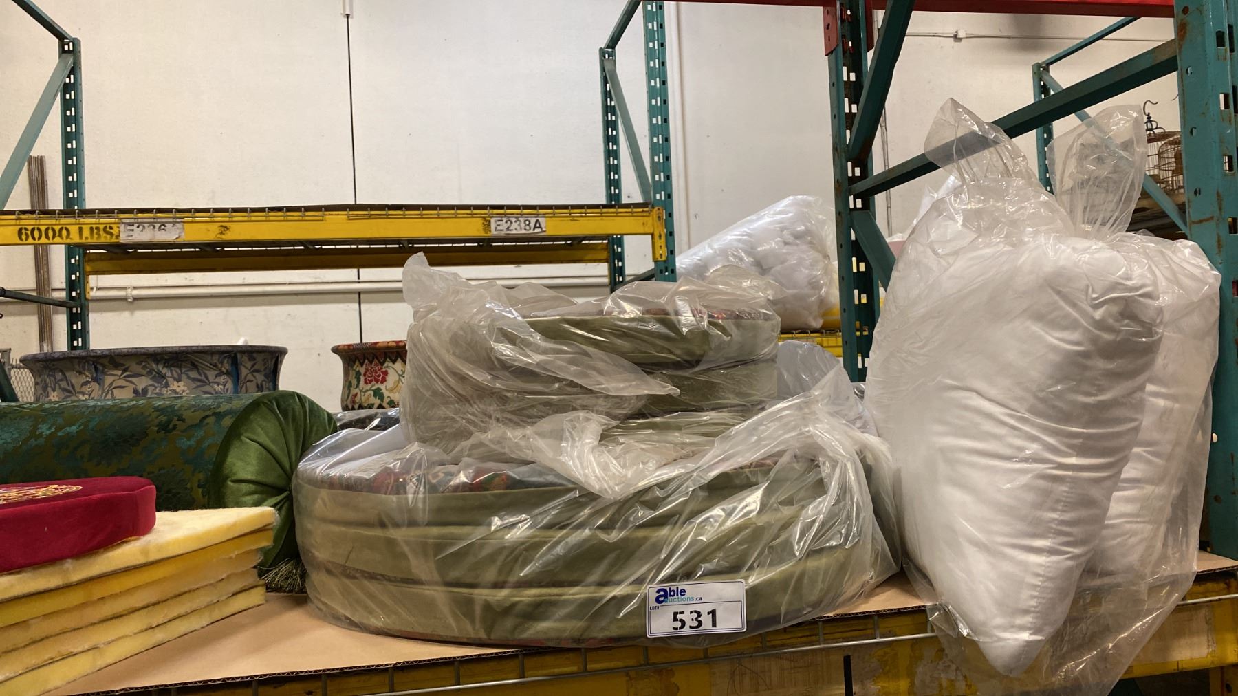 SHELF OF ASSORTED FLOOR CUSHIONS & PILLOWS