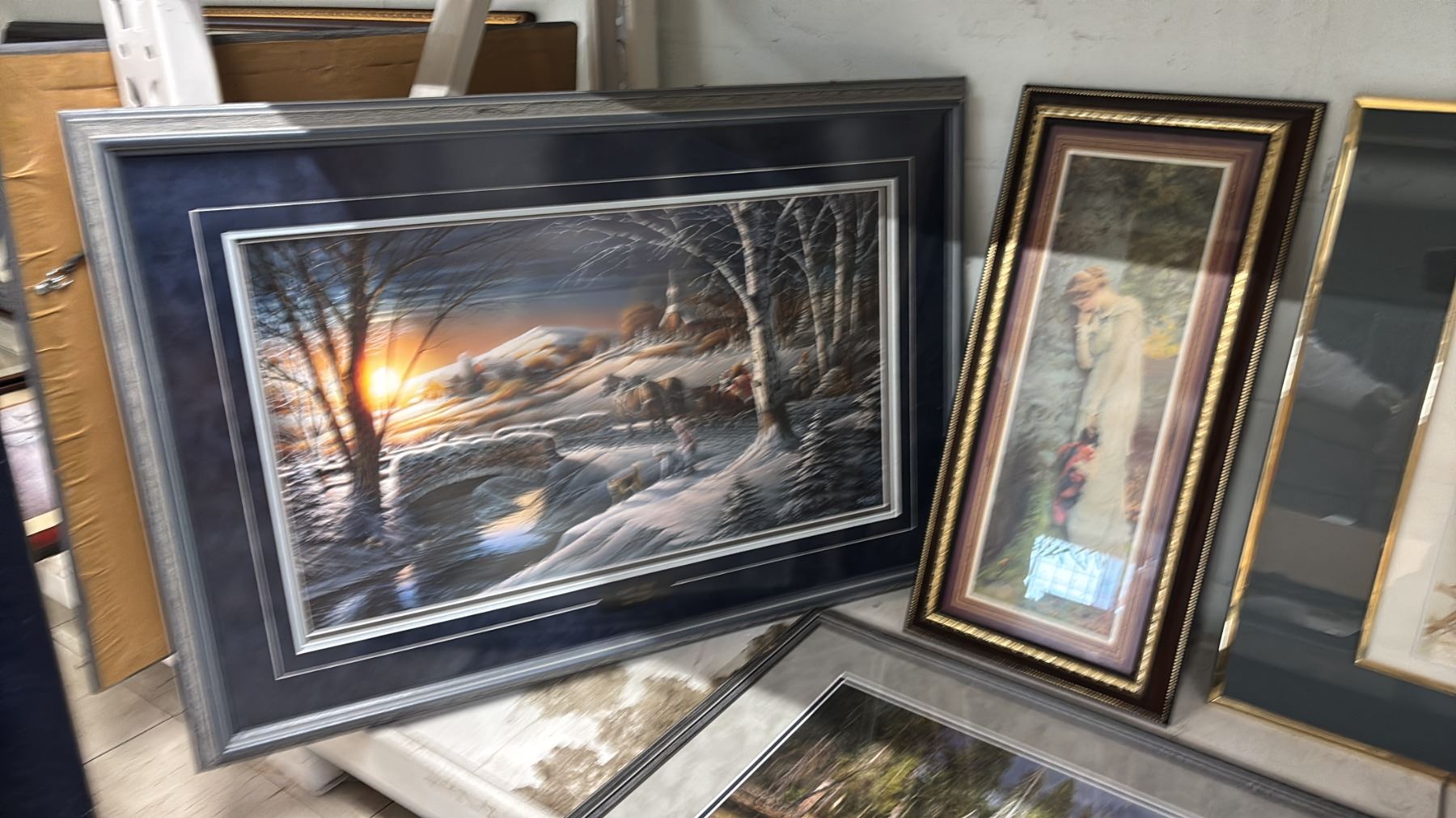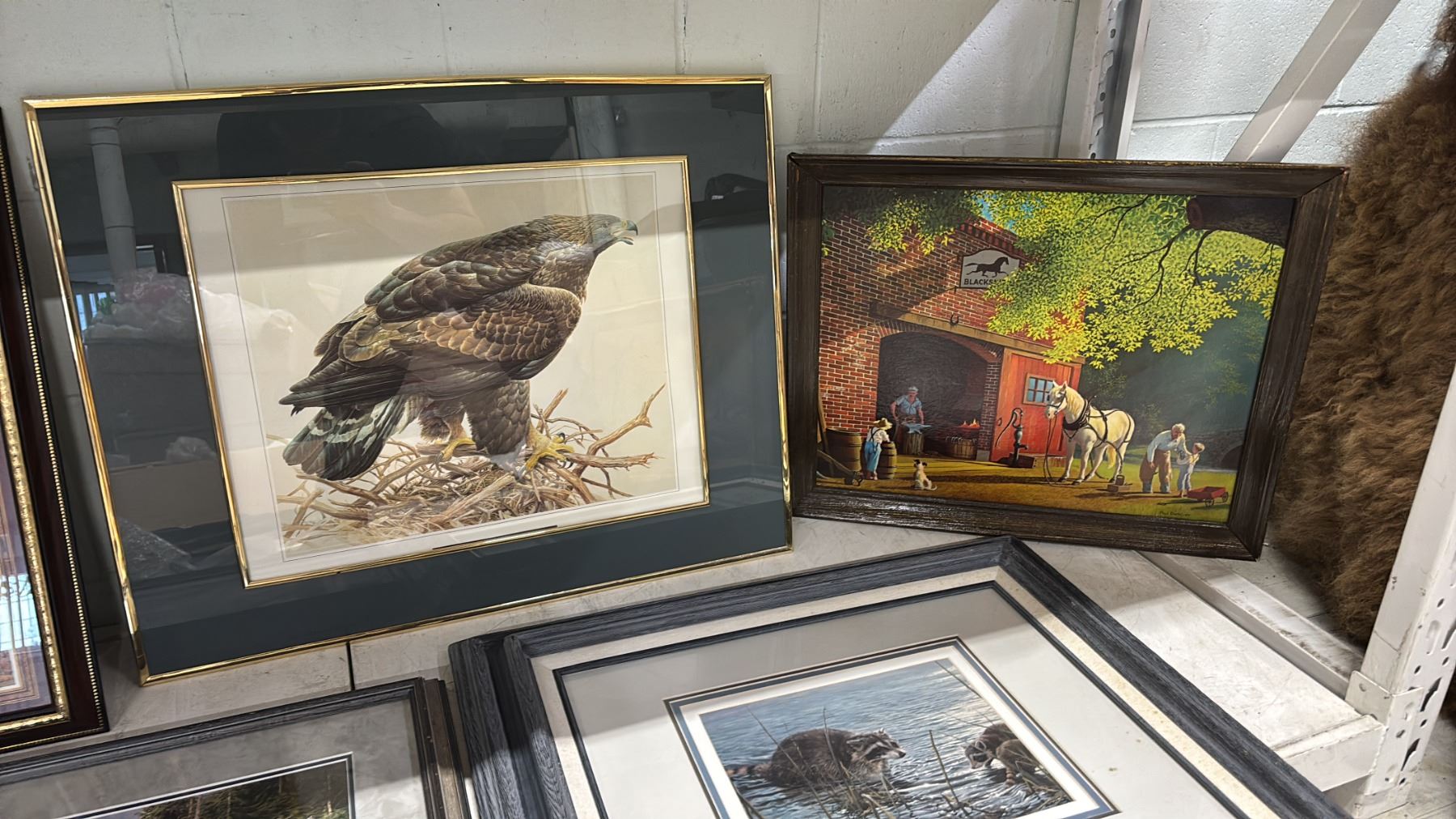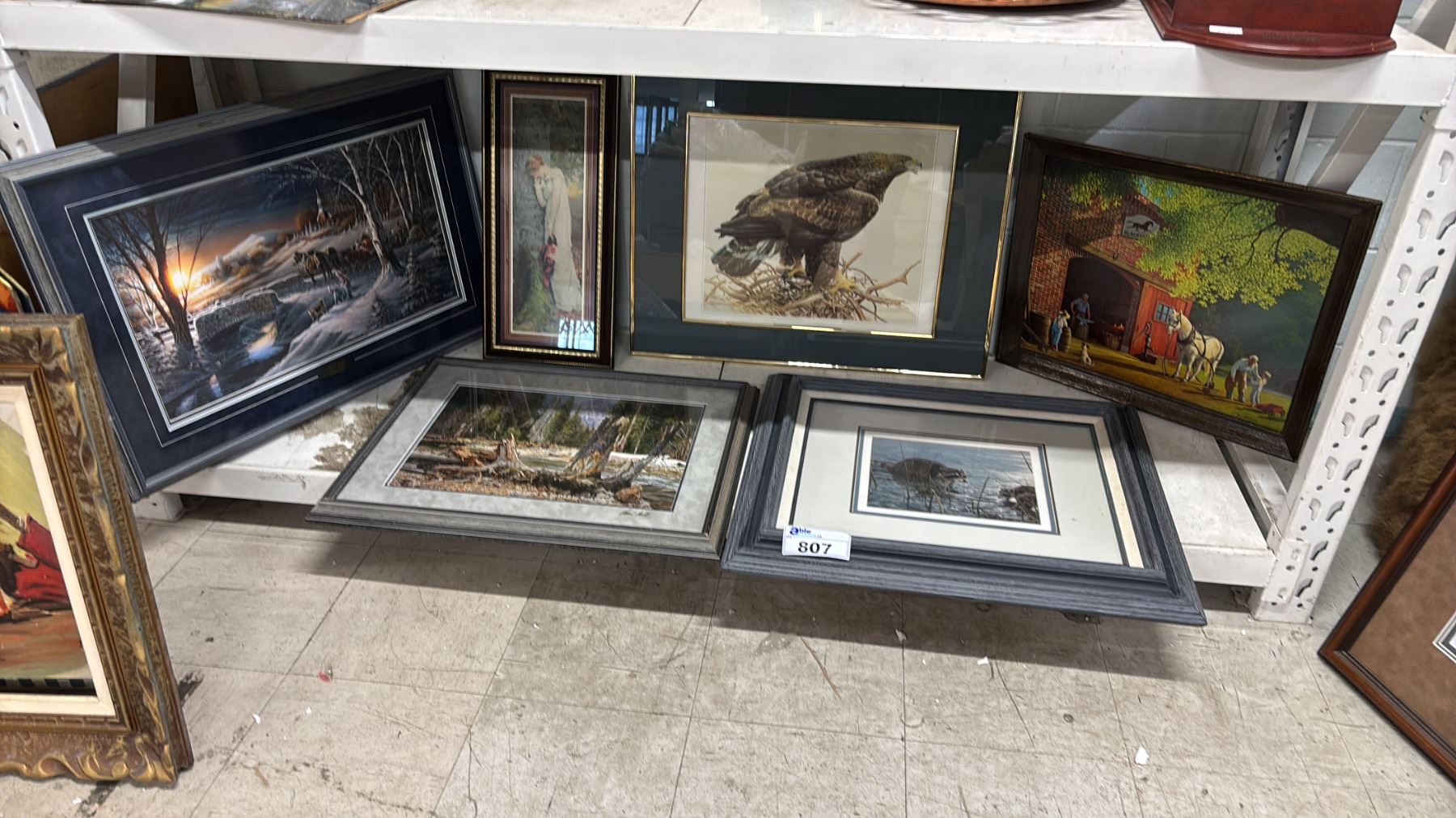 SHELF OF ASSORTED FRAMED PRINTS