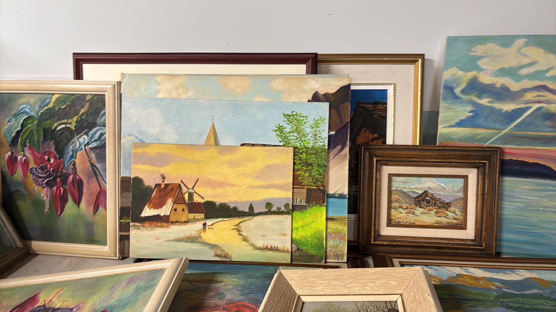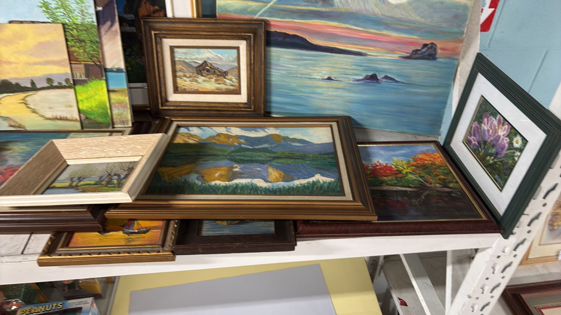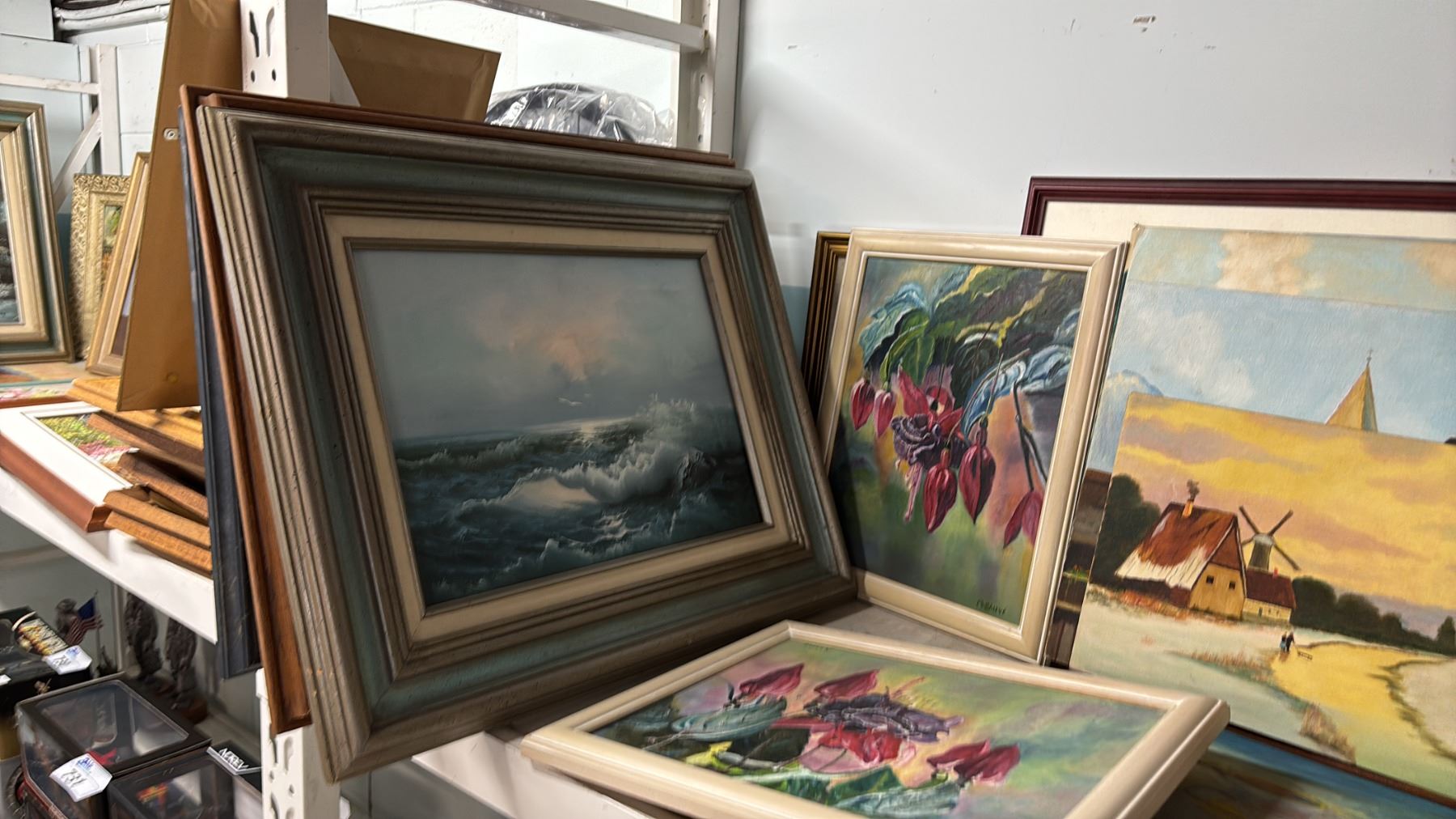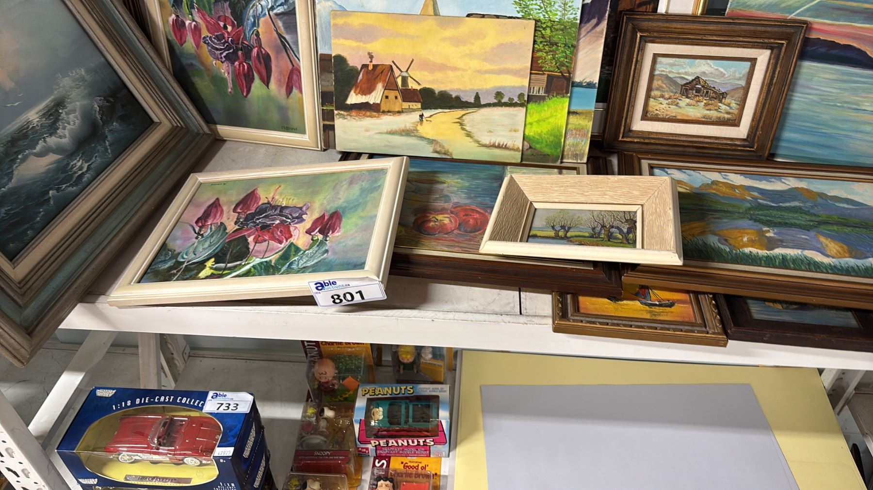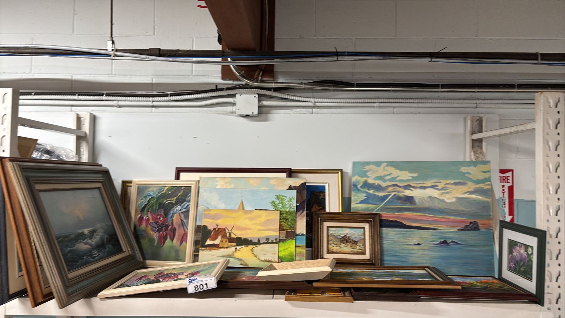 SHELF OF ASSORTED FRAMED & UNFRAMED ARTWORK