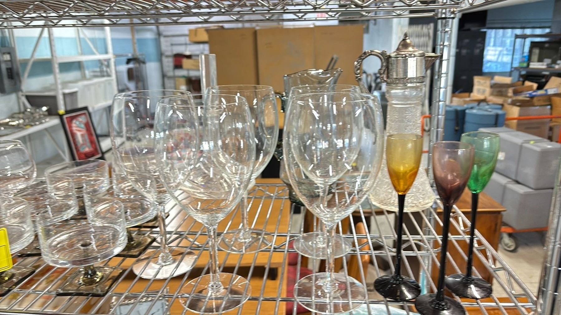 SHELF OF ASSORTED GLASSWARE