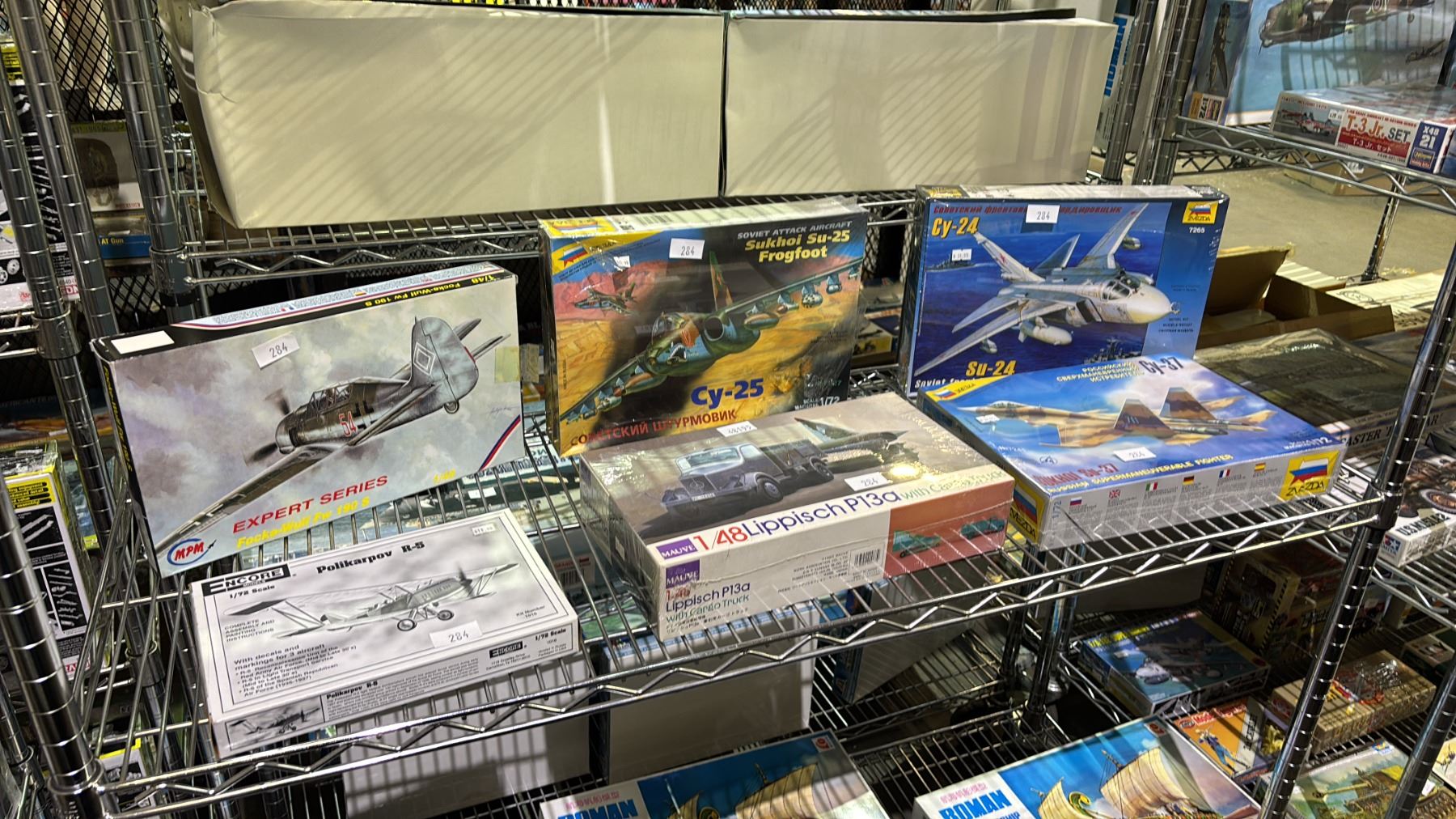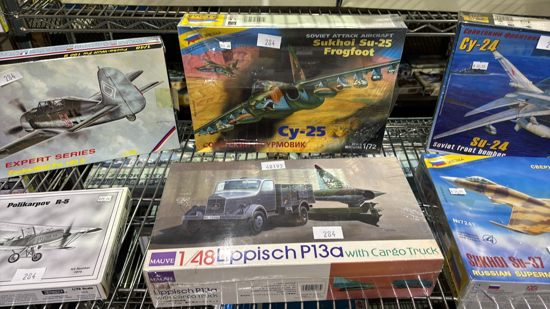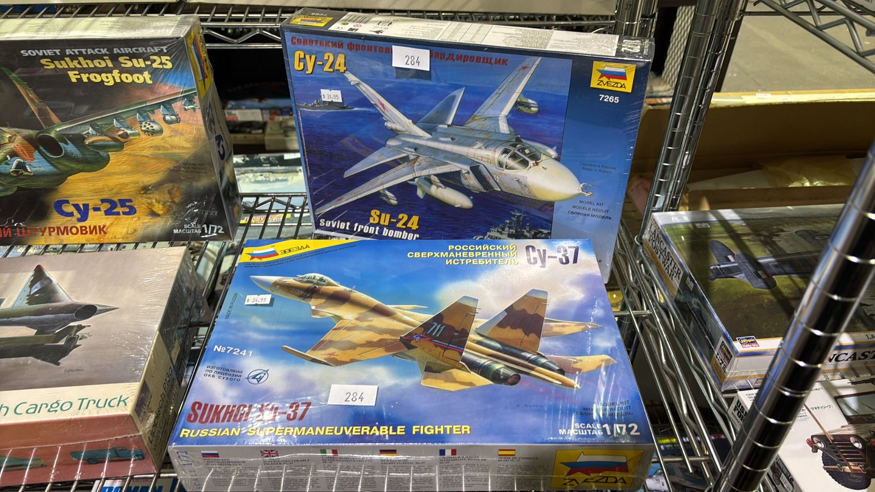 SHELF OF ASSORTED GROUND & AIR VEHICLE MODEL KITS: ENCORE, ZVEZDA, MPM & MAUVE