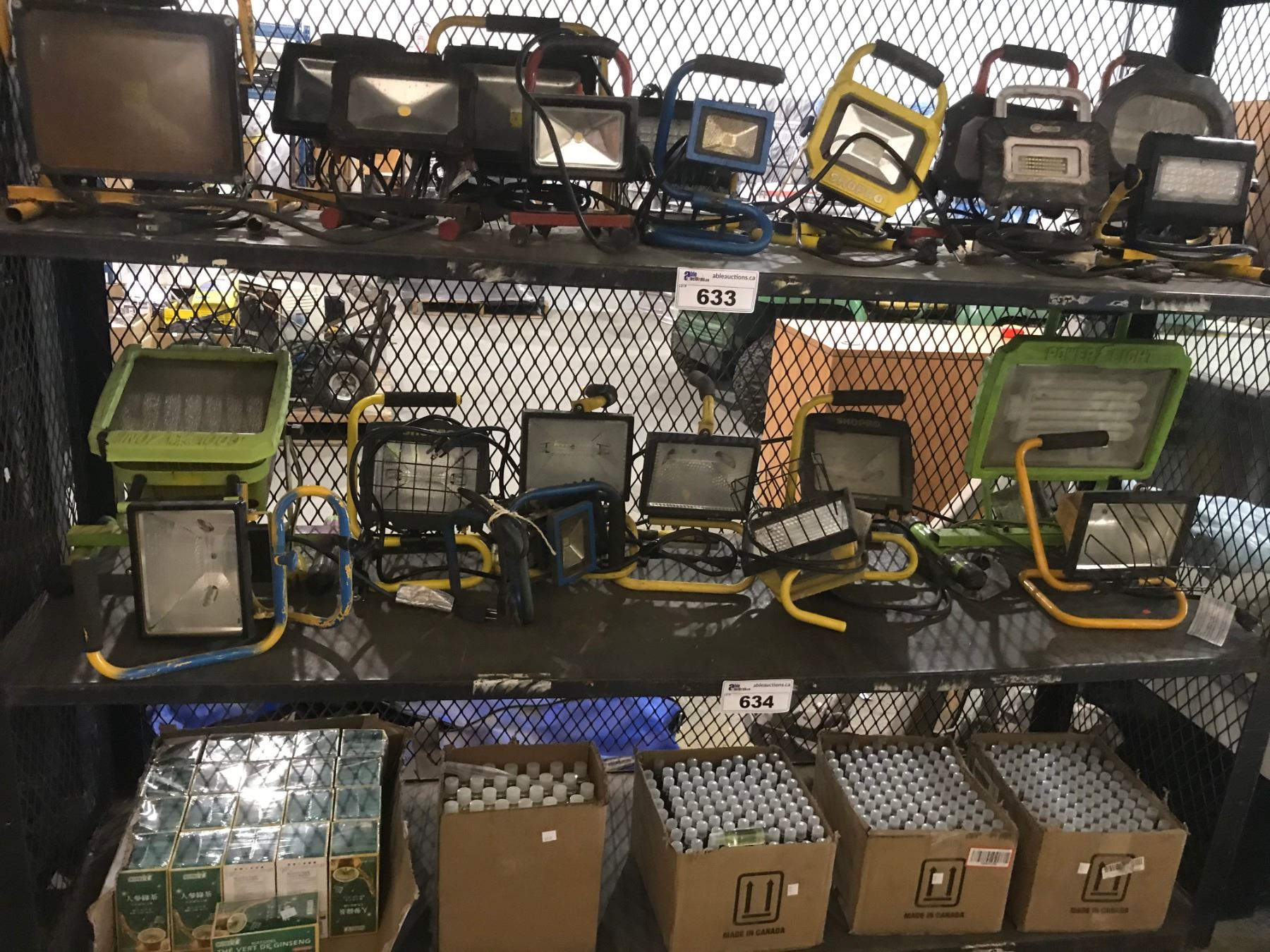 SHELF OF ASSORTED HALOGEN/LED WORKLIGHTS