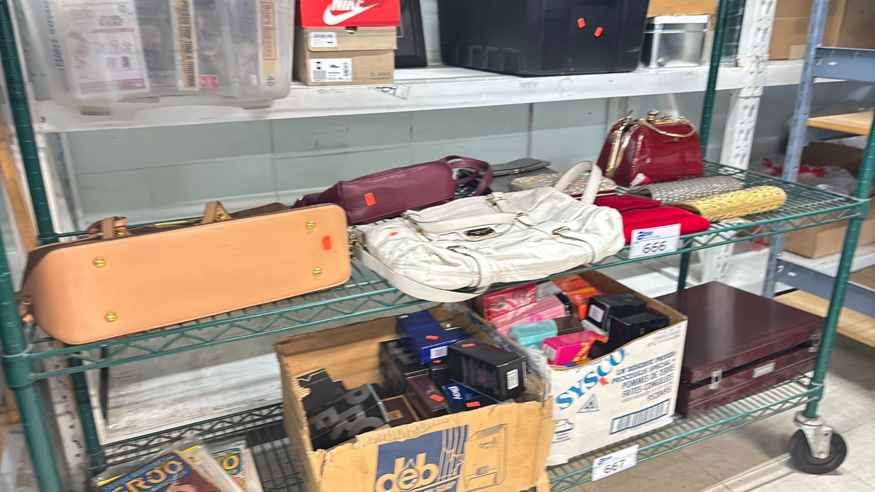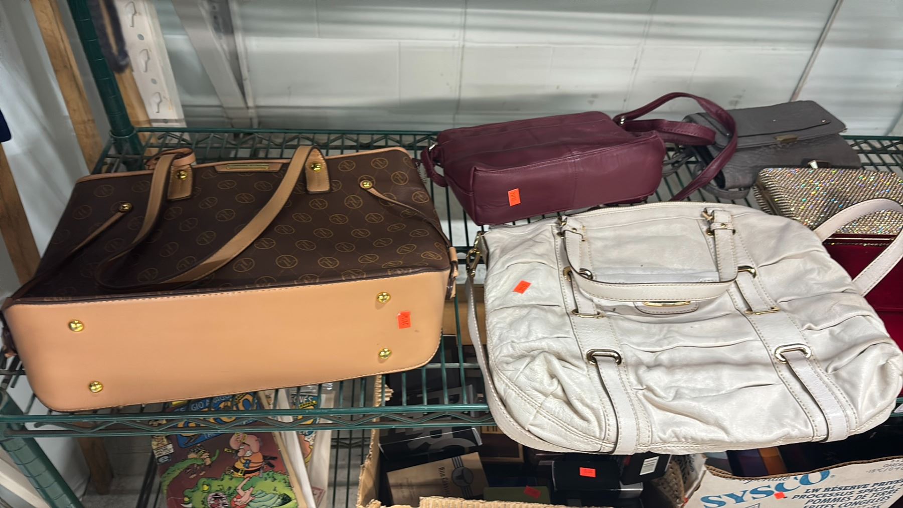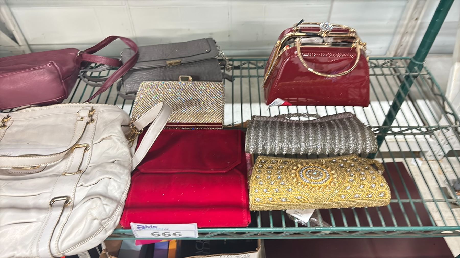 SHELF OF ASSORTED HANDBAGS