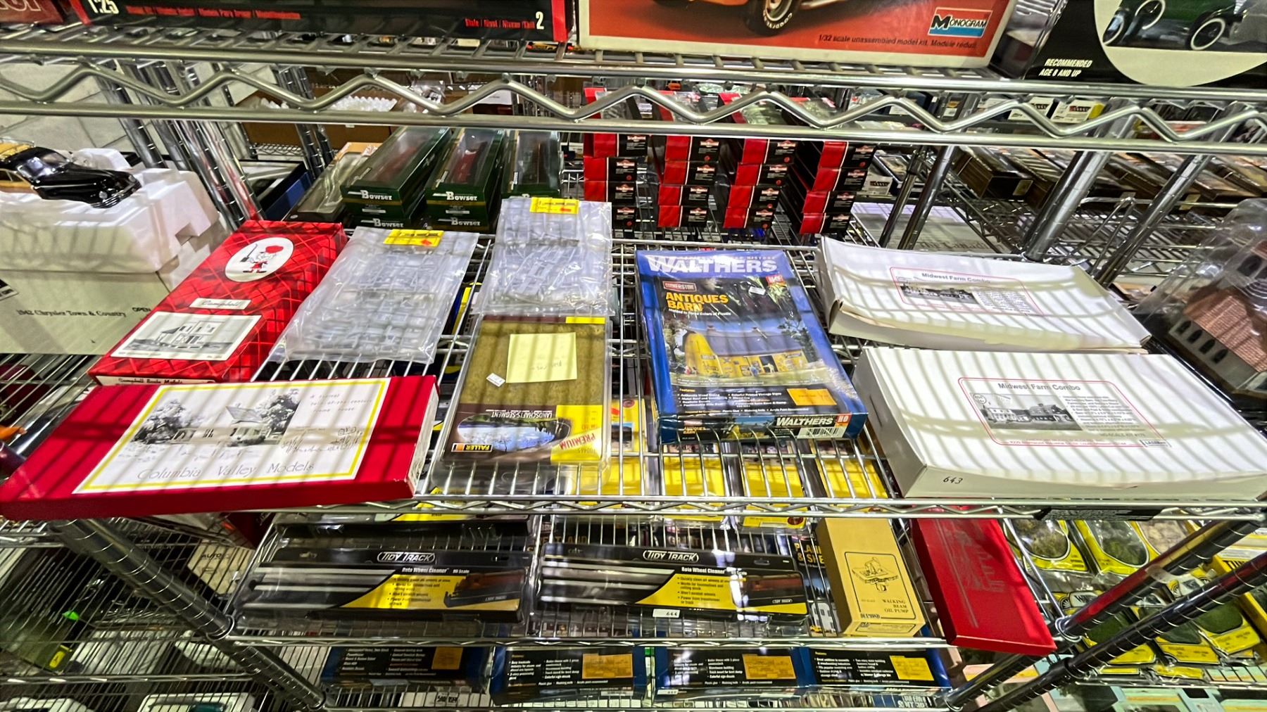 SHELF OF ASSORTED HO SCALE MODEL TRAIN SCENIC STRUCTURES