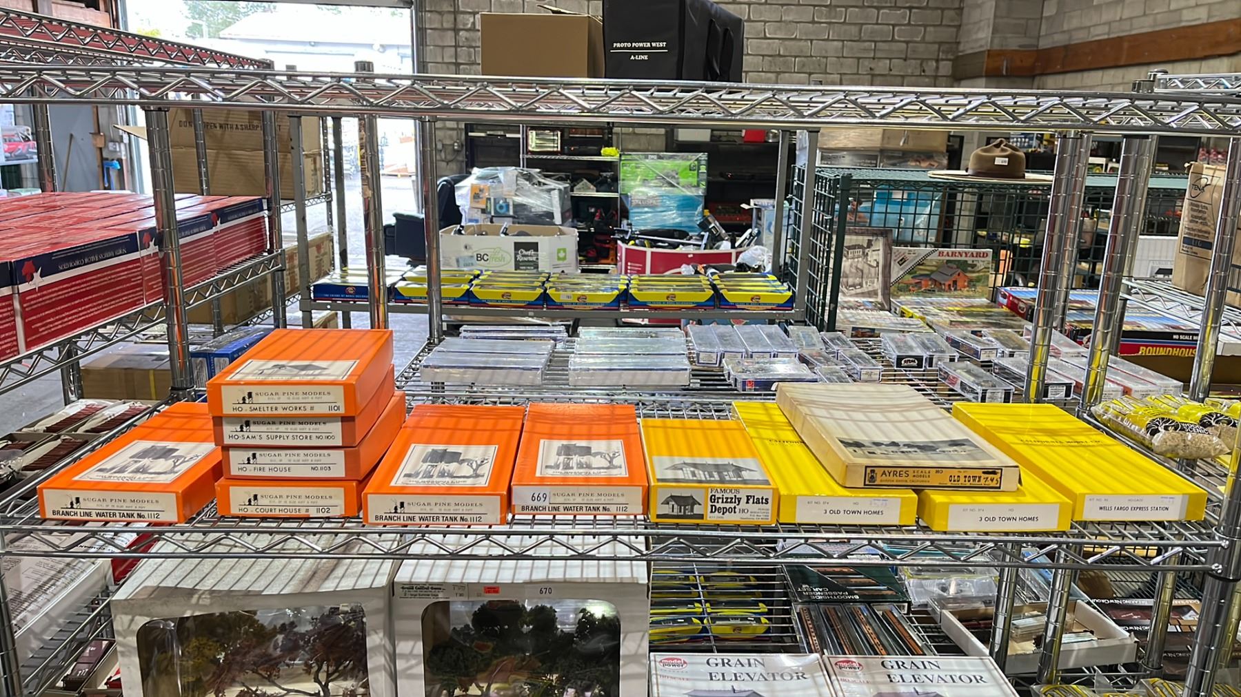 SHELF OF ASSORTED HO SCALE MODEL TRAIN SCENIC STRUCTURES