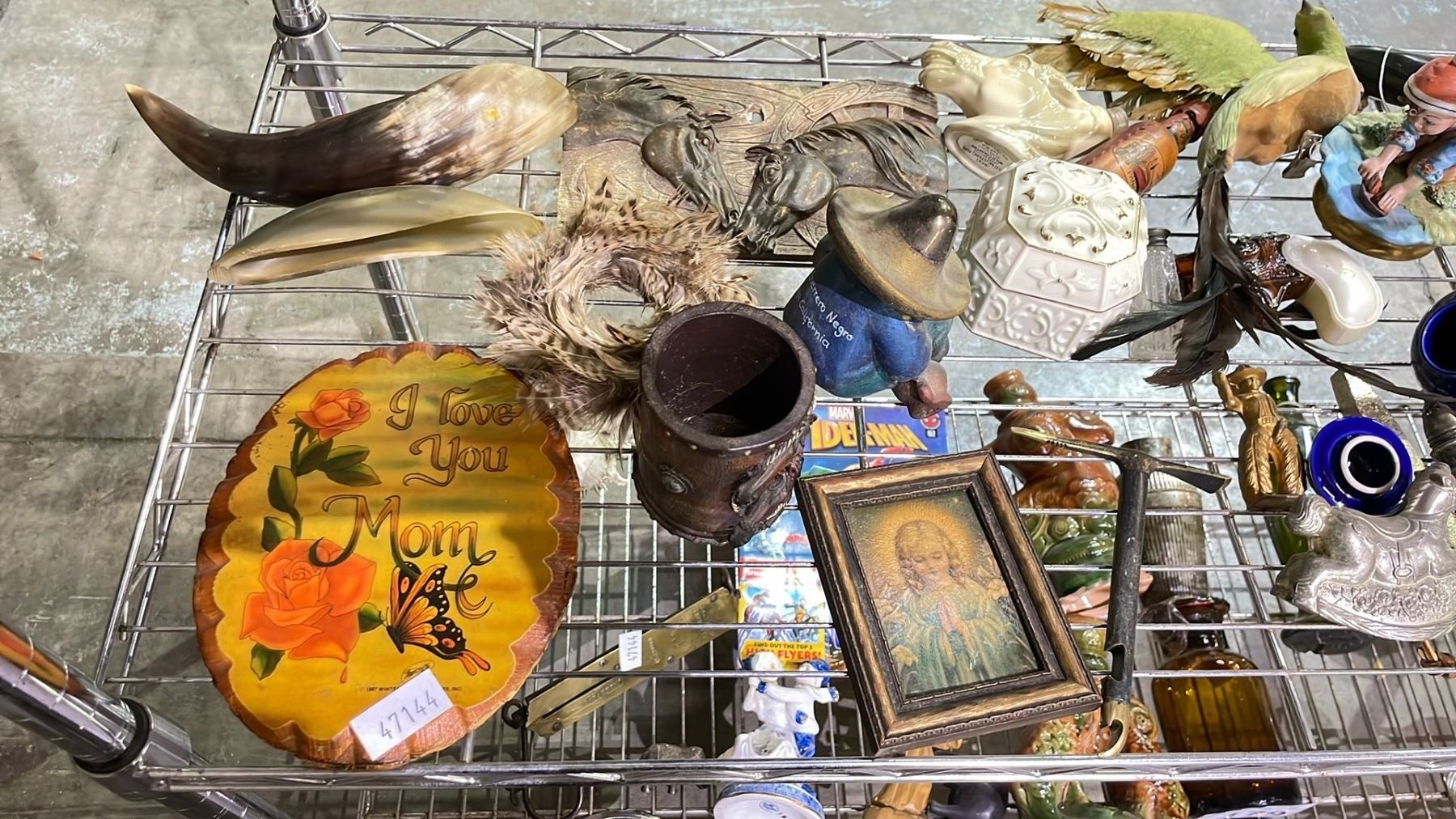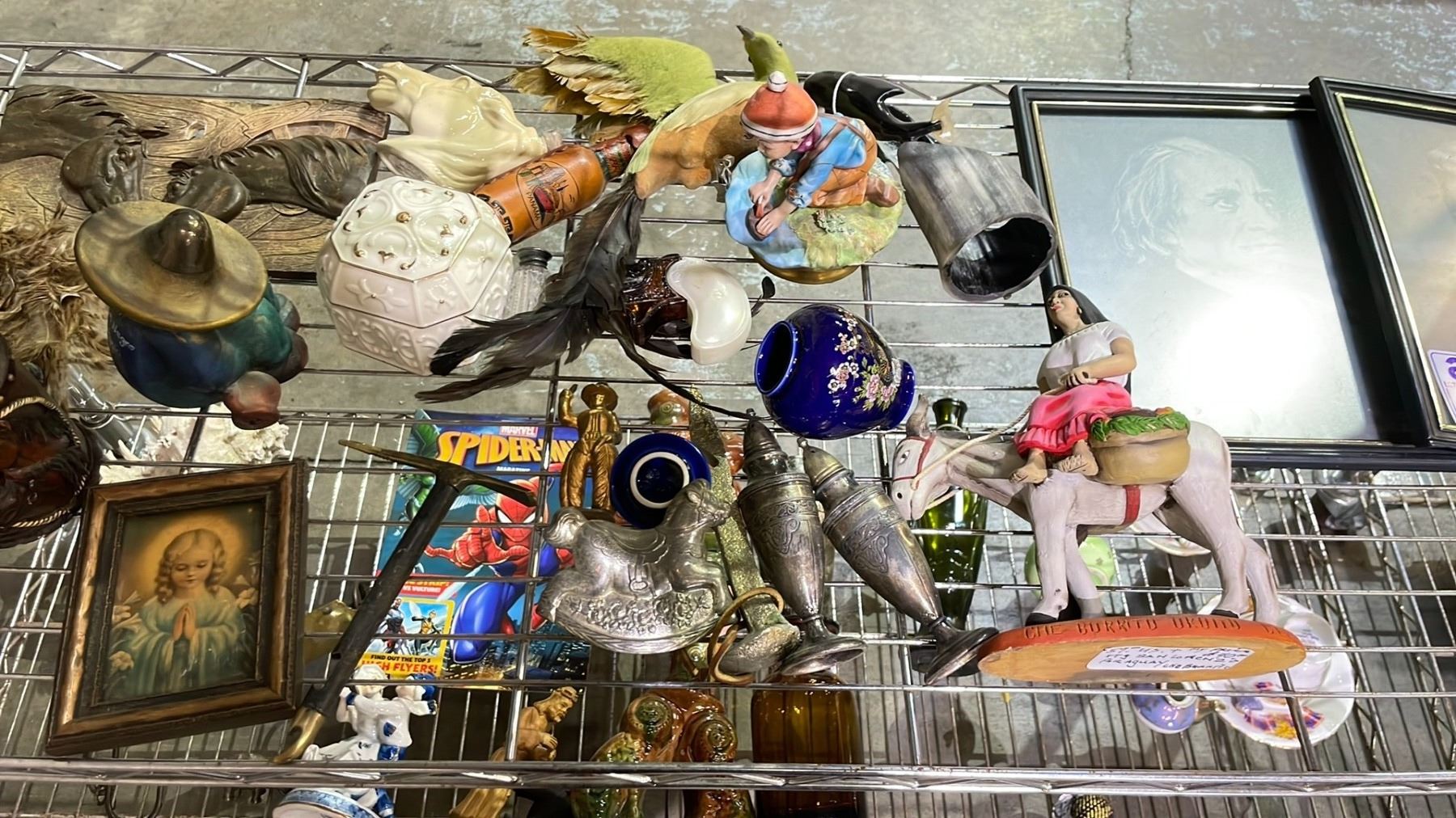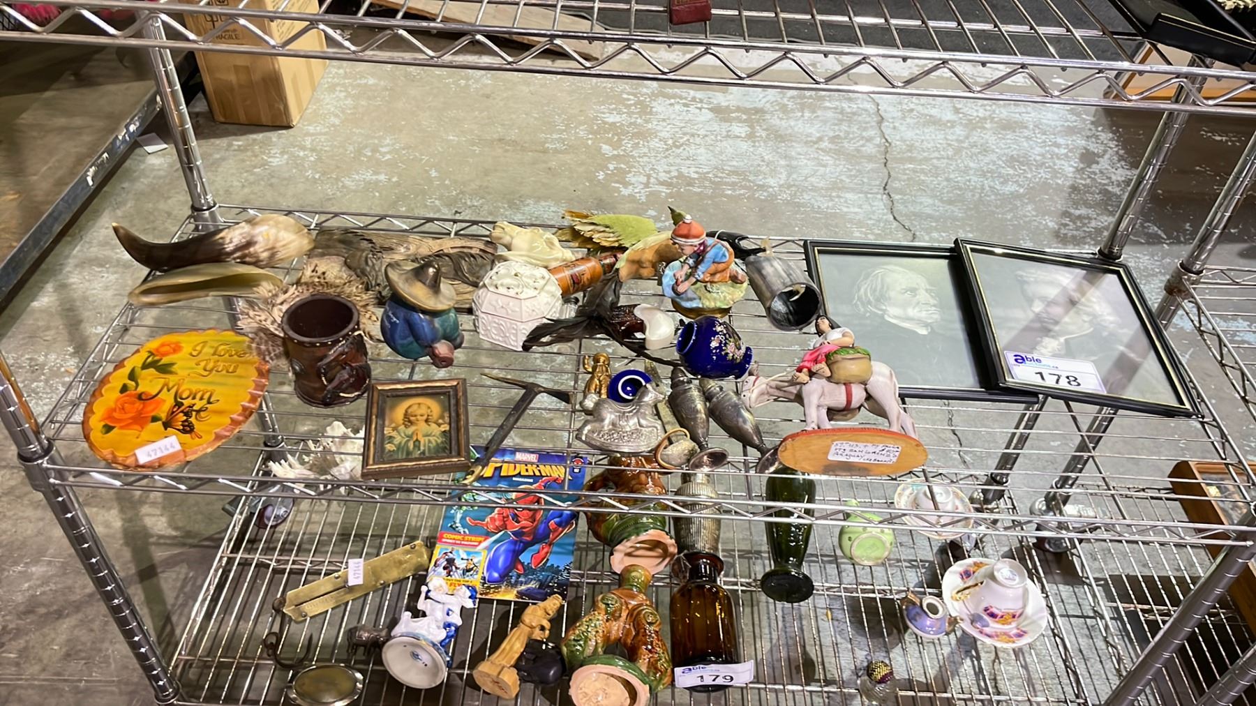 SHELF OF ASSORTED HOME DECOR ITEMS