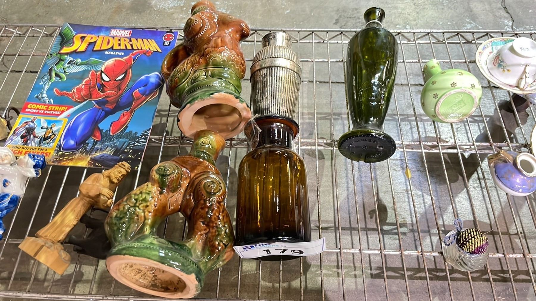 SHELF OF ASSORTED HOME DECOR ITEMS