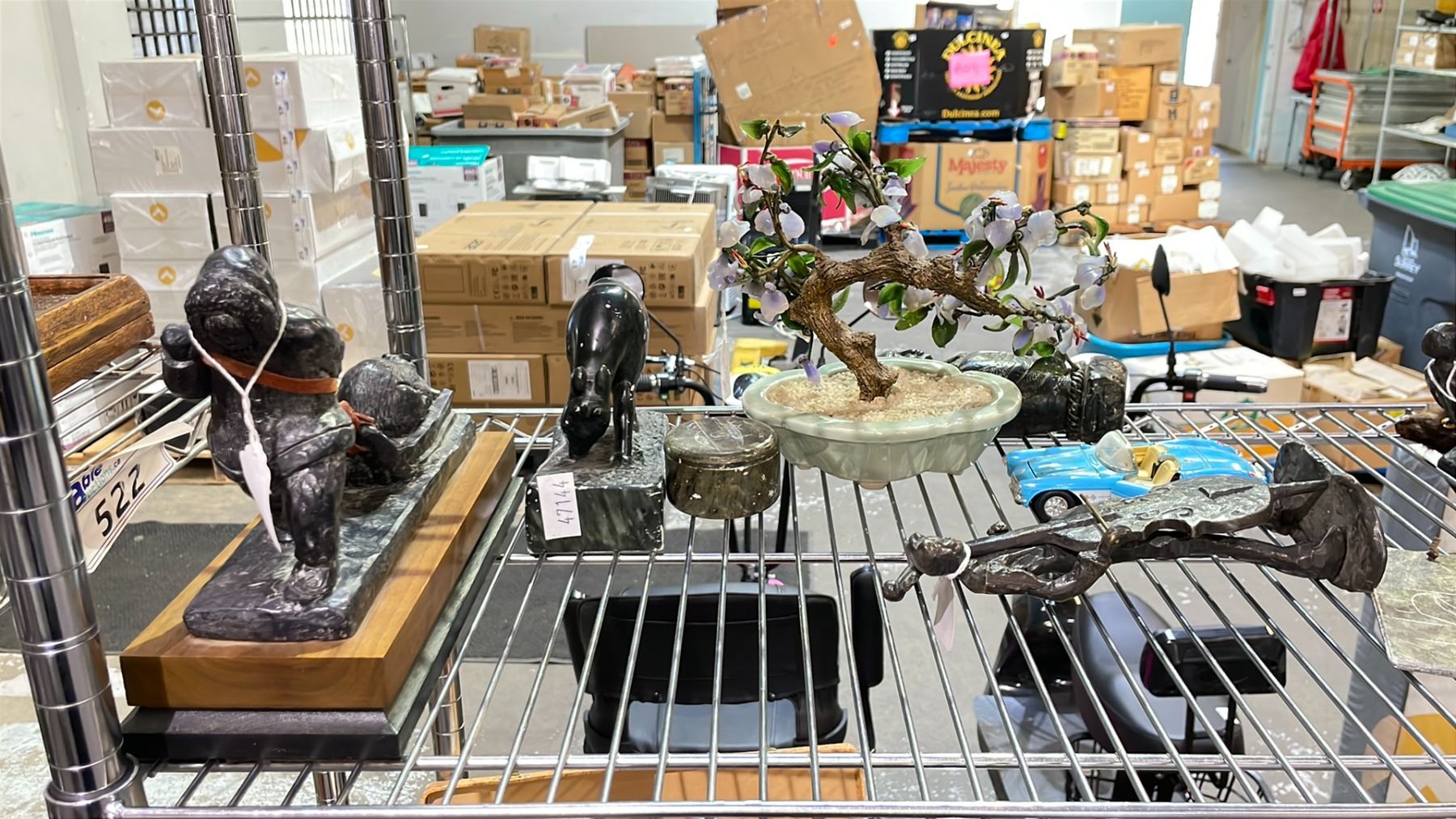 SHELF OF ASSORTED HOME DECOR ITEMS