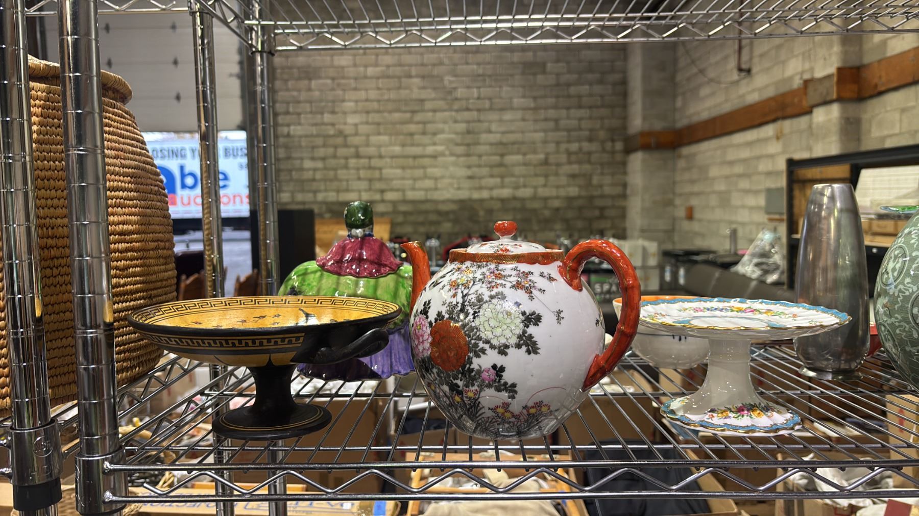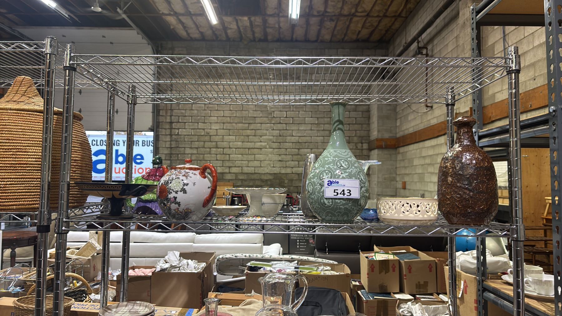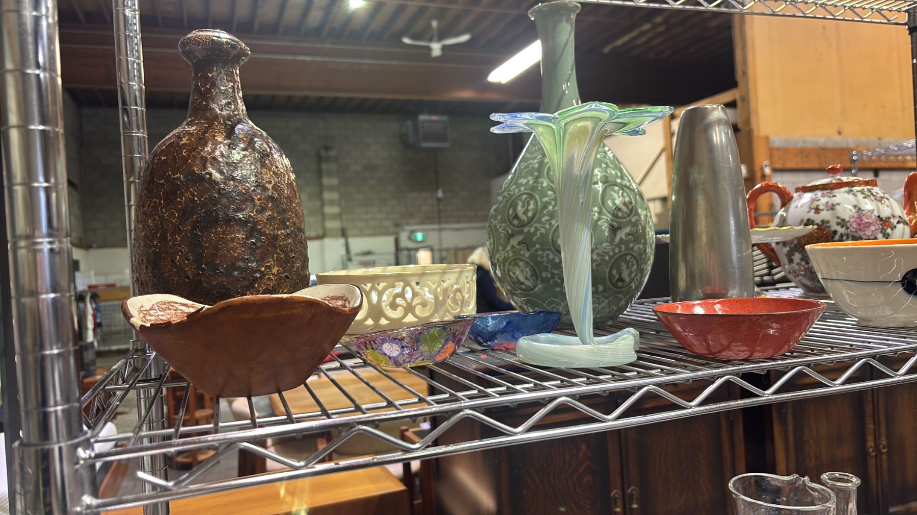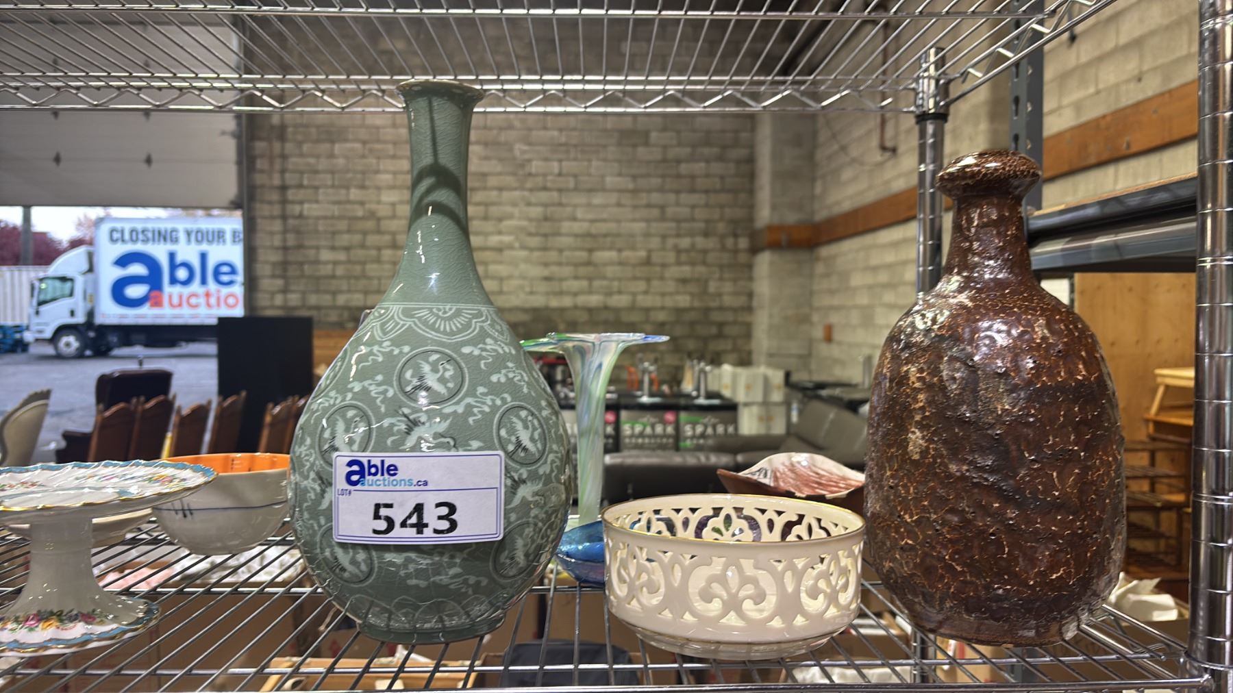 SHELF OF ASSORTED HOME DECOR ITEMS