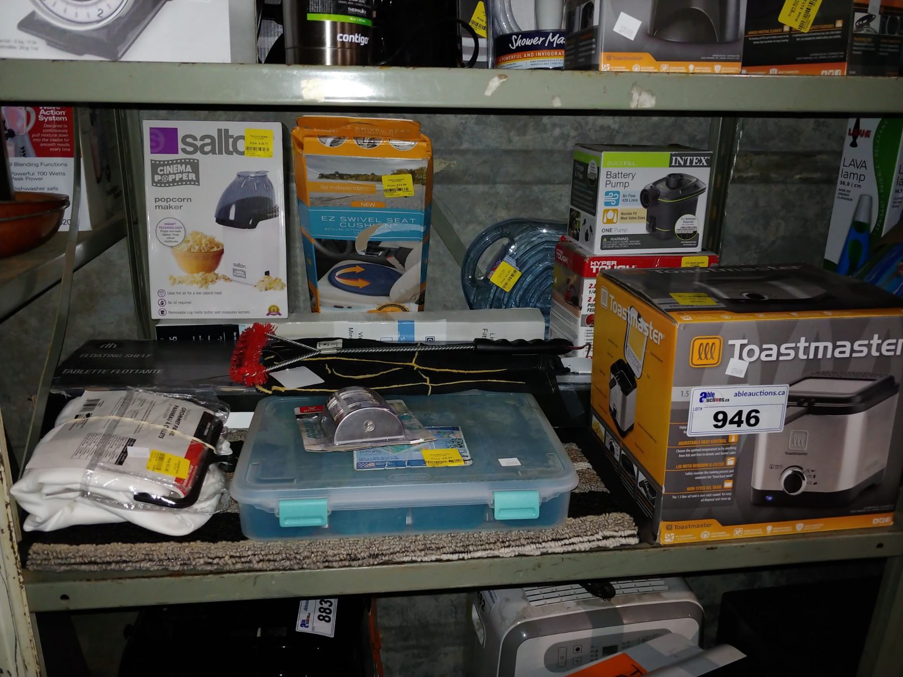 SHELF OF ASSORTED HOME ITEMS AND MORE