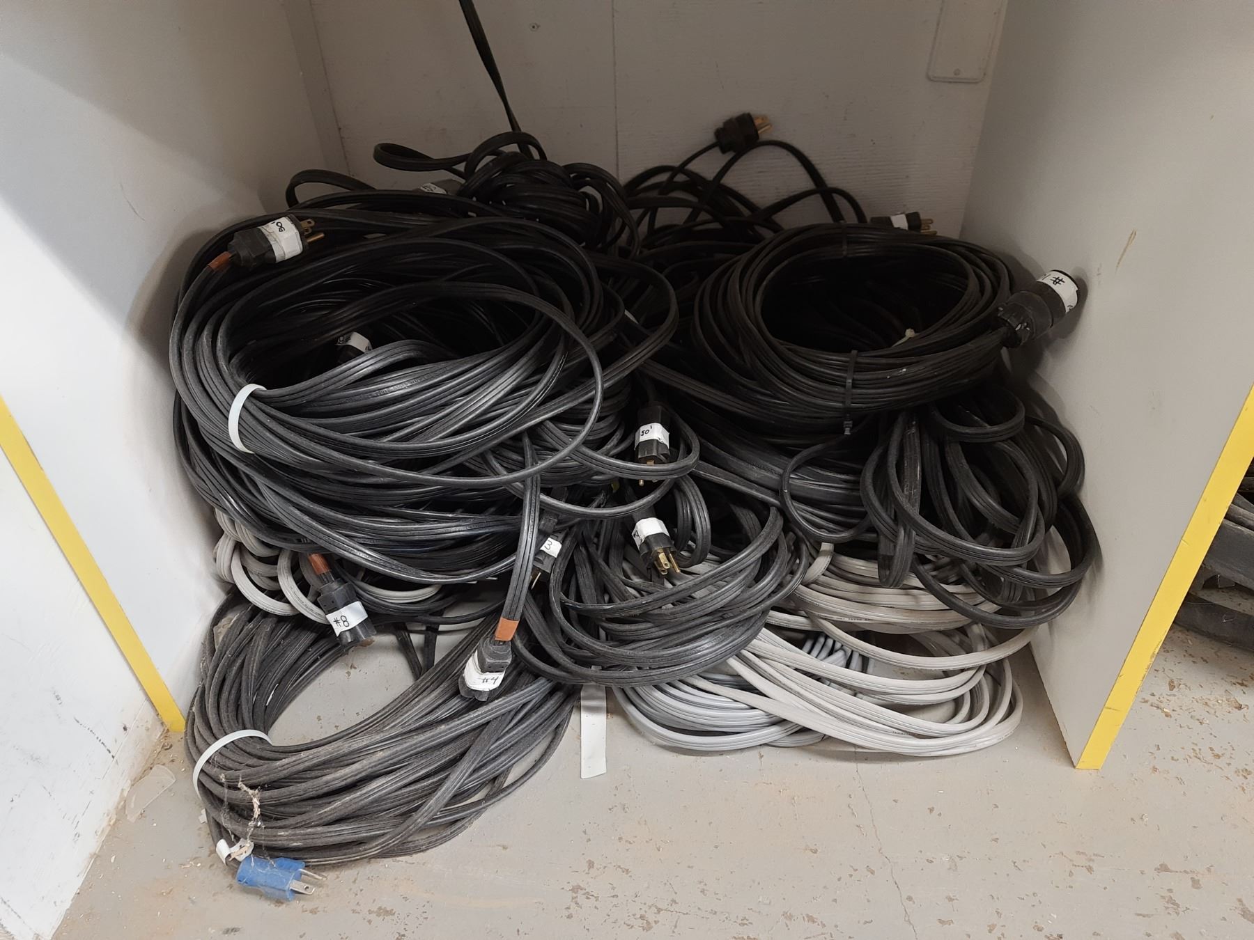 SHELF OF ASSORTED INDUSTRIAL EXTENSION CORDS