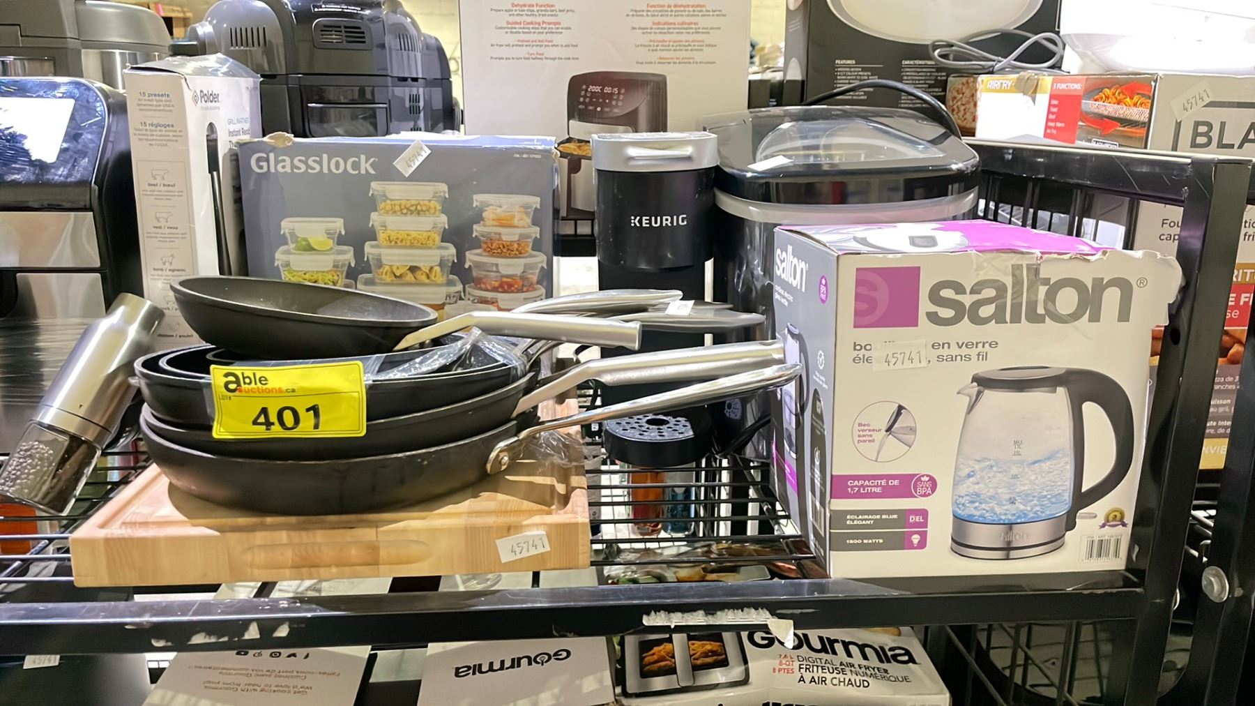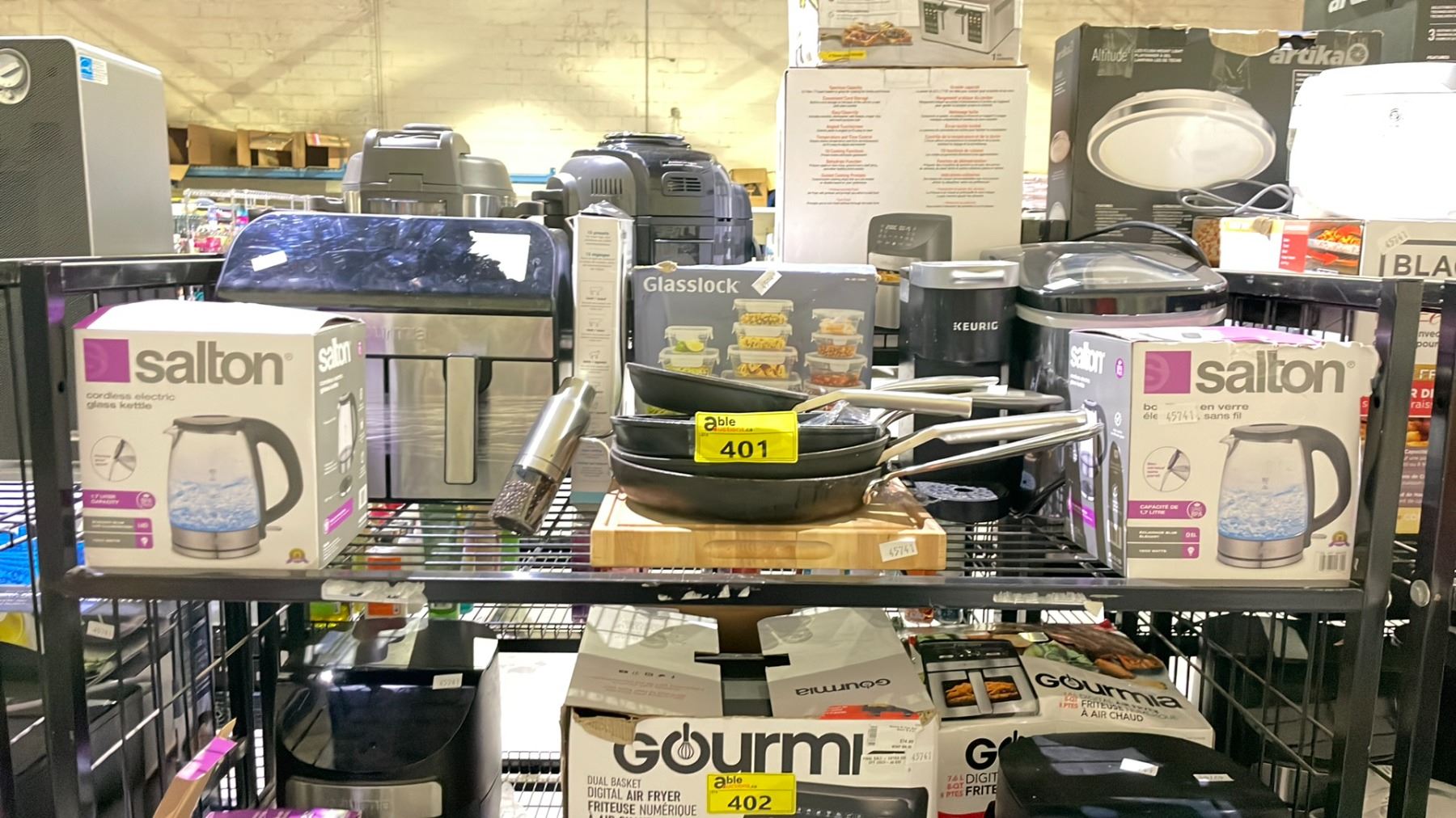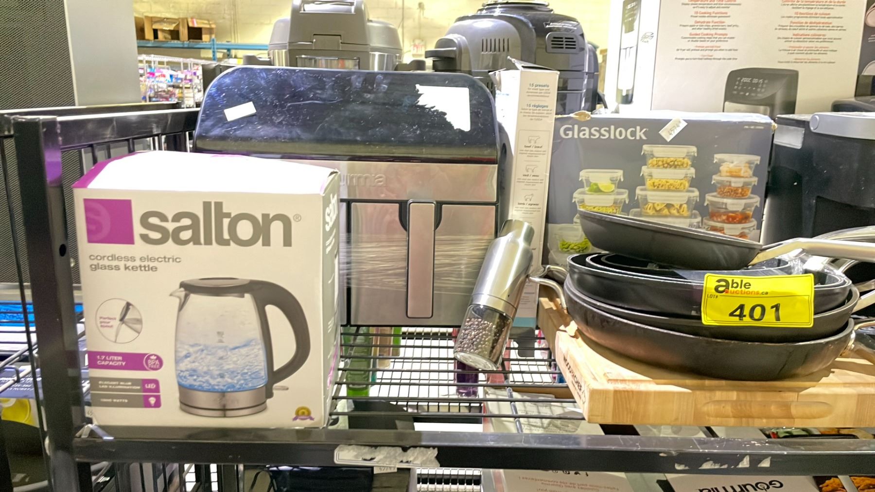 SHELF OF ASSORTED ITEMS INCLUDING; AIR FRYER, PANS, KEURIG COFFEE MAKER & MORE (UNKNOWN WORKING CONDITION, MAY BE MISSING PIECES)