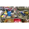 SHELF OF ASSORTED ITEMS INCLUDING; CLIMBING ROPE, FOLDABLE PYLON, TORCH & MORE