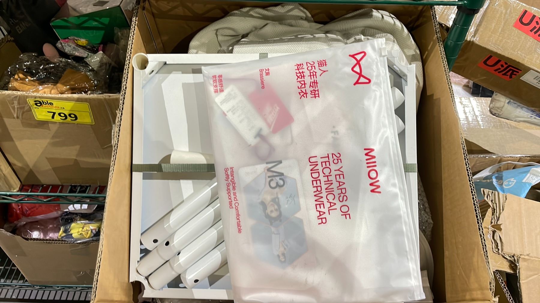 SHELF OF ASSORTED ITEMS INCLUDING; CLOTHING, WEBCAM, PENS & MORE