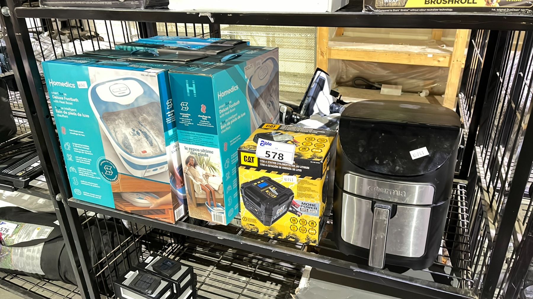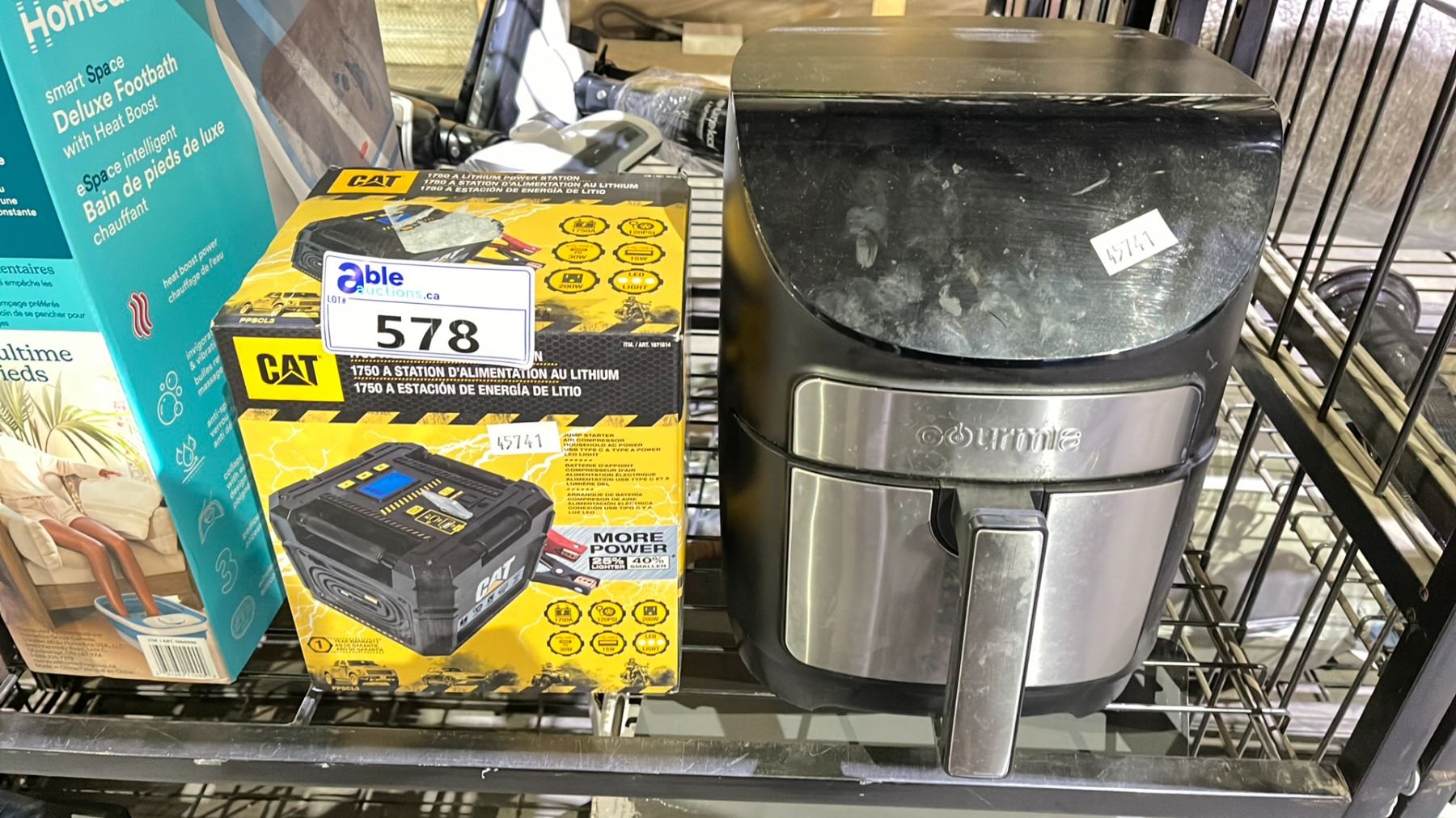 SHELF OF ASSORTED ITEMS INCLUDING; FOOTBATHS, CAT POWER STATION & GOURMIA AIR FRYER (UNKNOWN WORKING CONDITION, MAY BE MISSING PIECES)