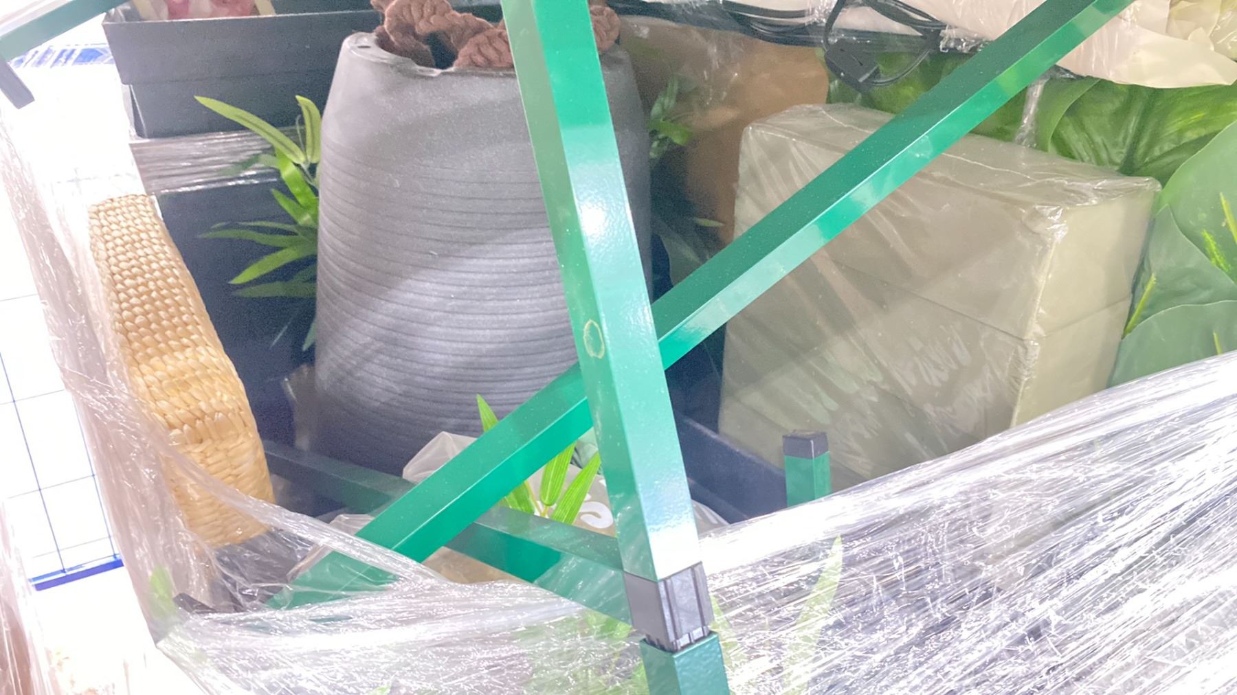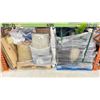 SHELF OF ASSORTED ITEMS INCLUDING; PLANTER STANDS, SET DEC SIGNS, PLANTER POTS & MORE