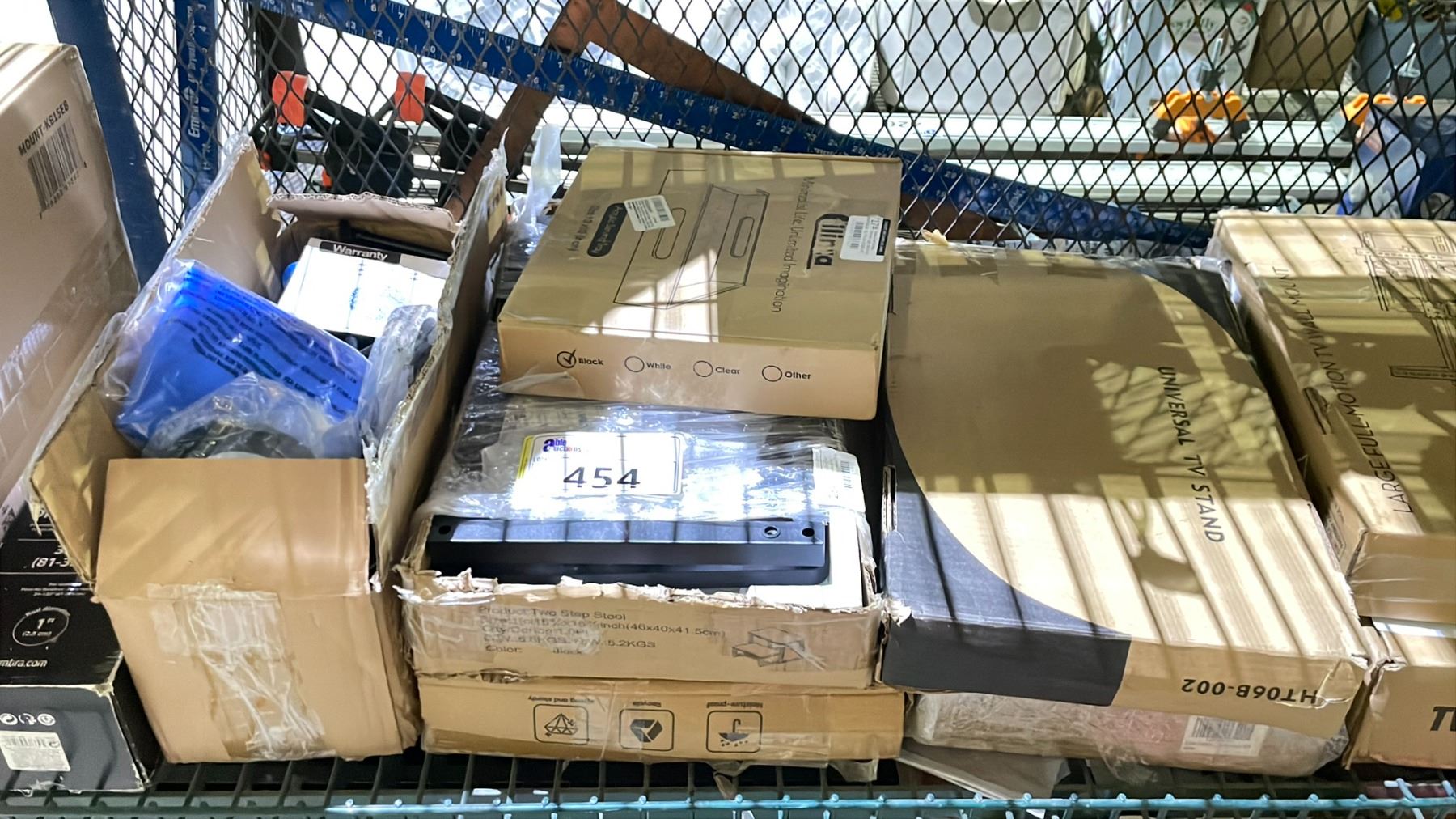 SHELF OF ASSORTED ITEMS INCLUDING: PORTABLE NET, SMALL SHELF & MORE (UNKNOWN WORKING CONDITION, MAY