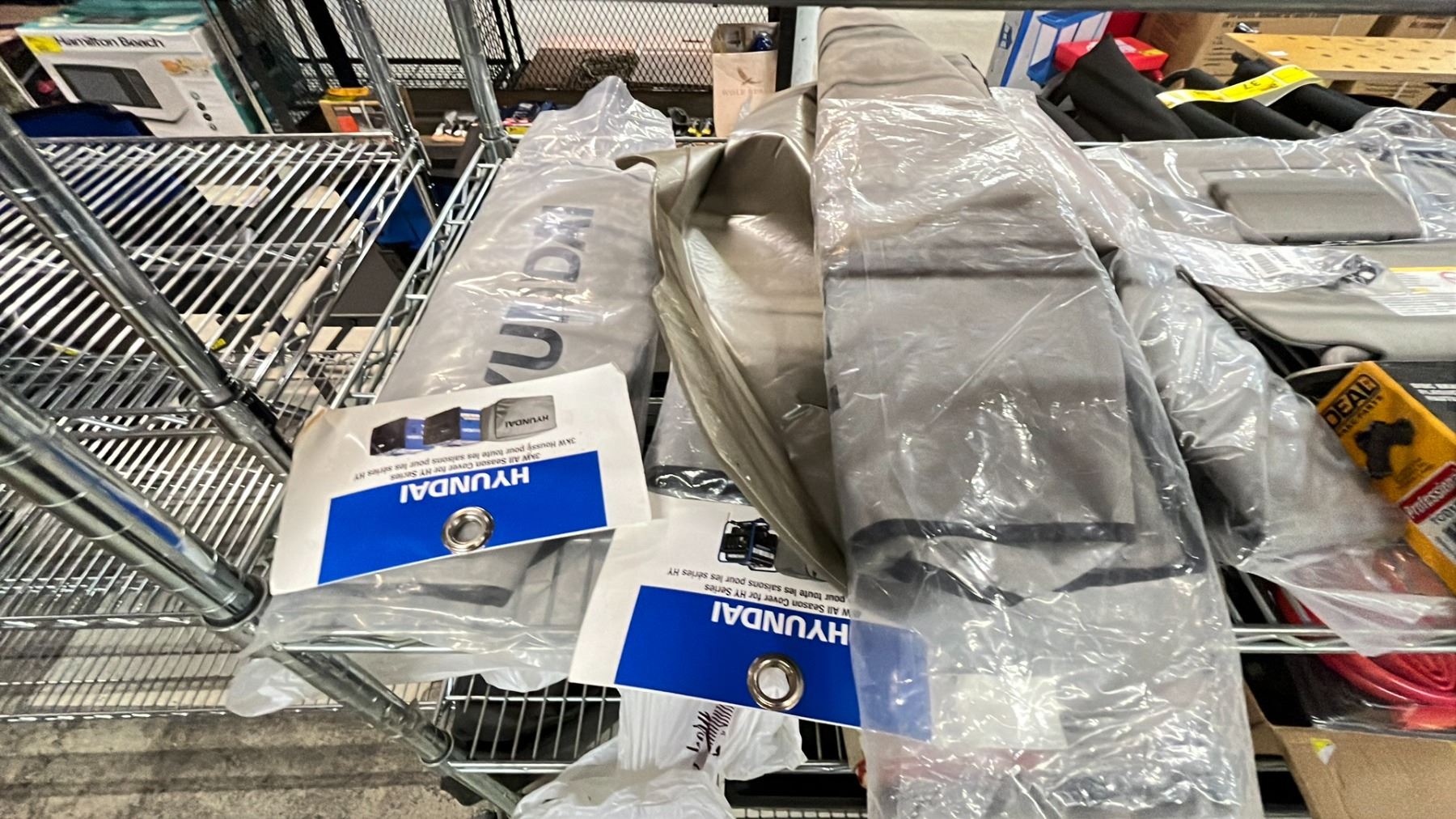 SHELF OF ASSORTED ITEMS, INCLUDING: SPRAY BOTTLES, COLD WATER FAUCET COVER, DISK BREAK PADS, & MORE