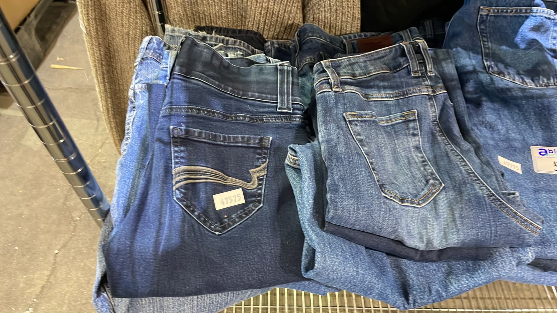 SHELF OF ASSORTED JEAN & SHORTS - ASSORTED SIZES, STYLES & COLOURS