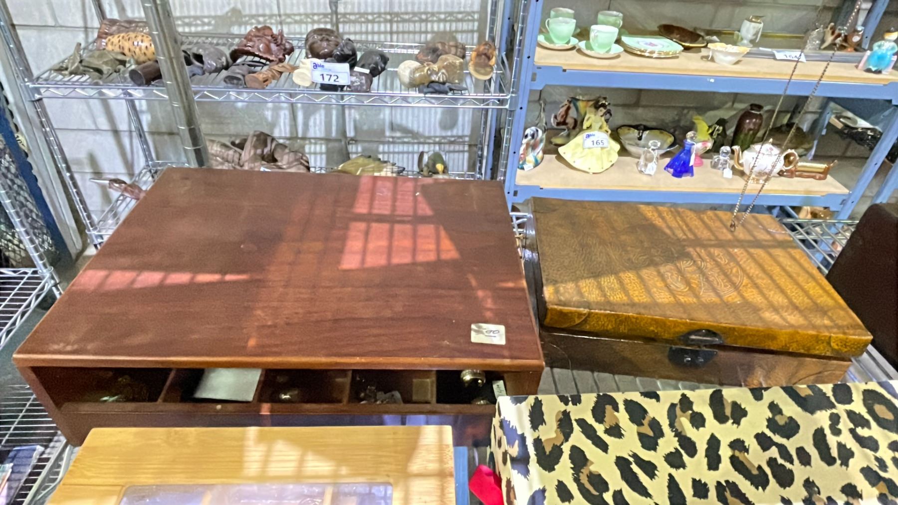SHELF OF ASSORTED JEWELLERY BOXES & COSTUME JEWELLERY