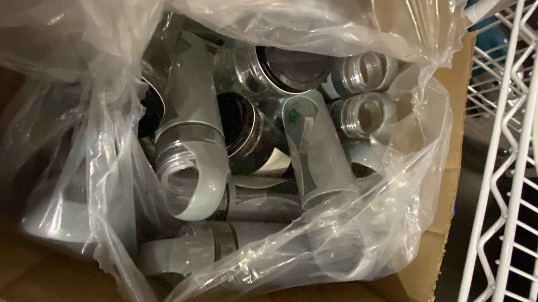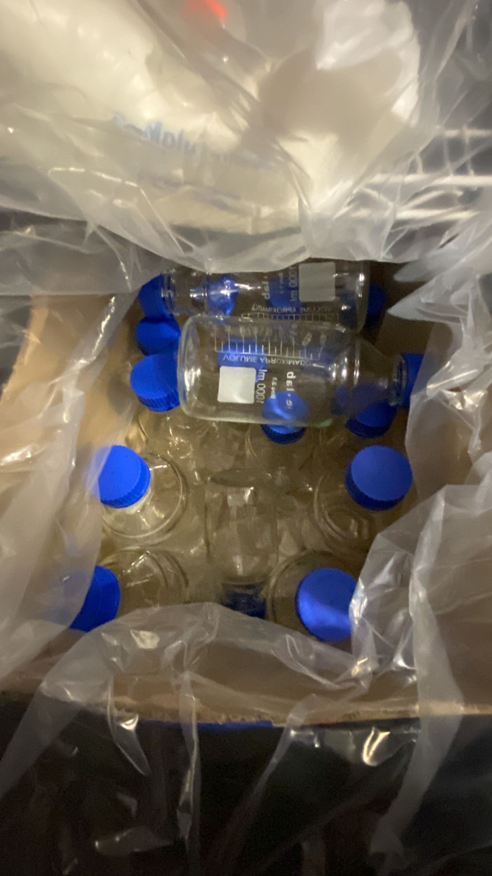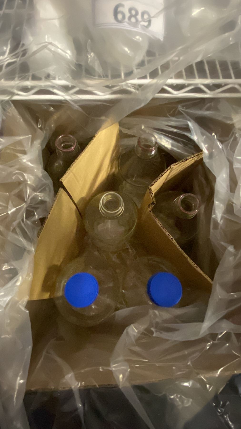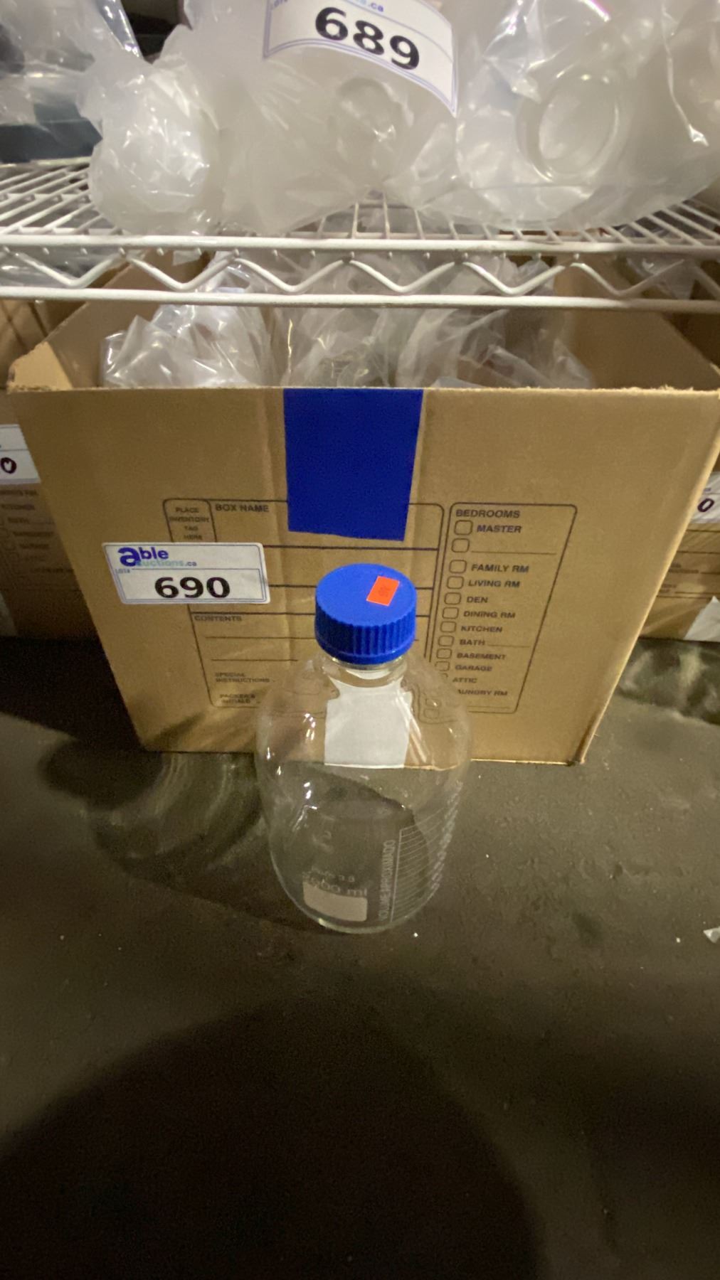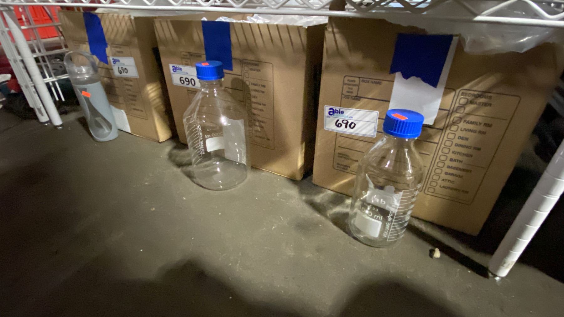 SHELF OF ASSORTED LABORATORY GLASSWARE