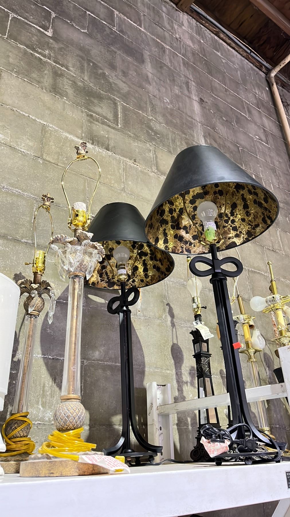 SHELF OF ASSORTED LAMPS WITH SOME SHADES