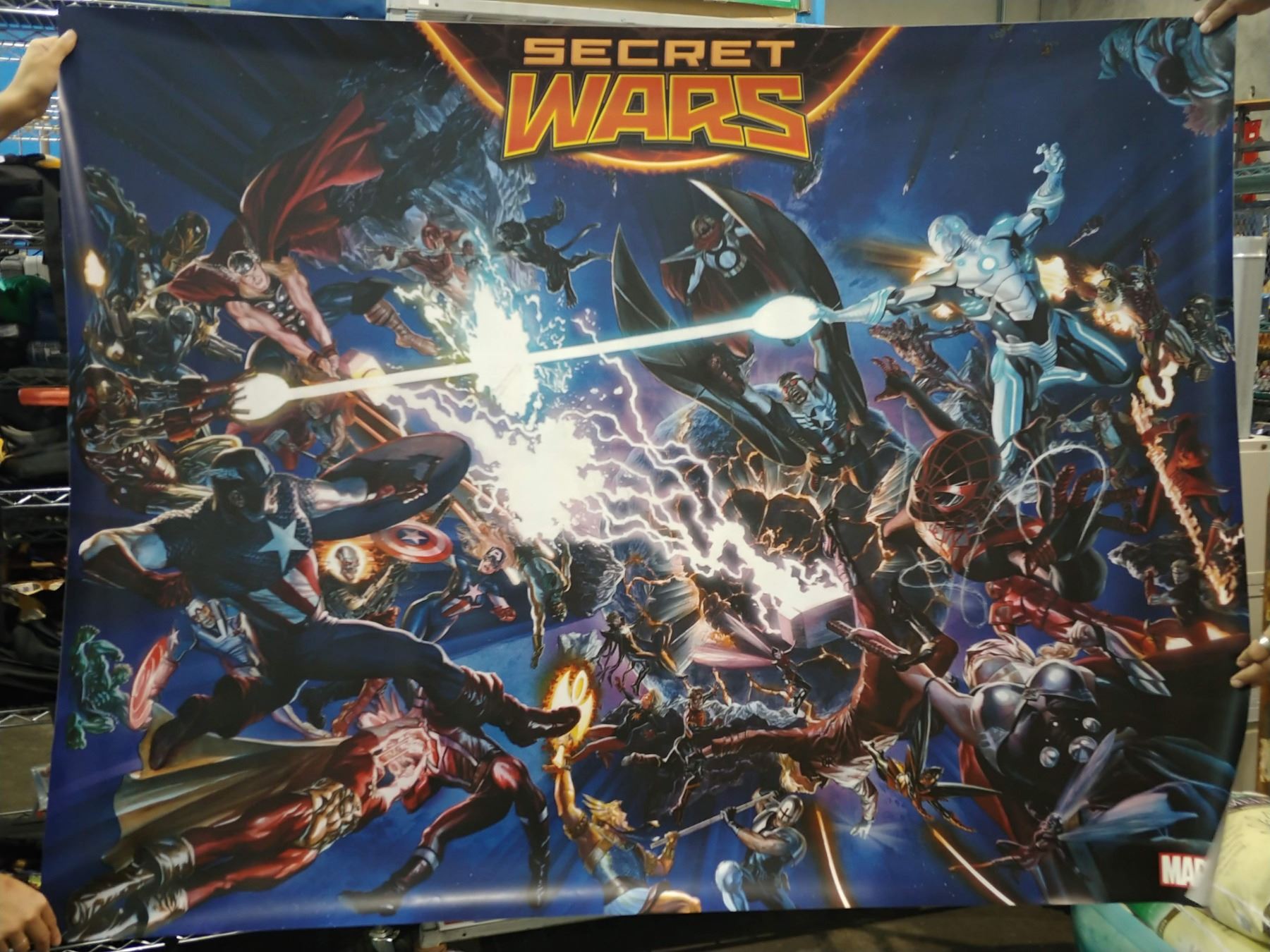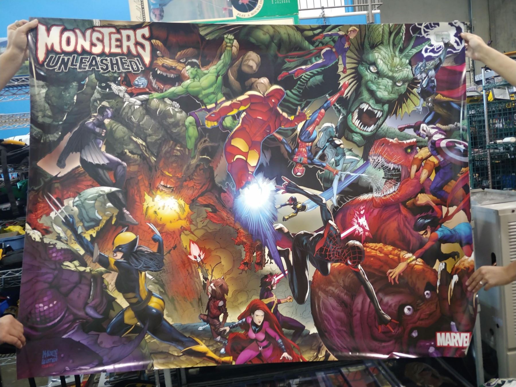 SHELF OF ASSORTED LARGE VINYL POSTERS INCLUDING MARVEL AND MORE