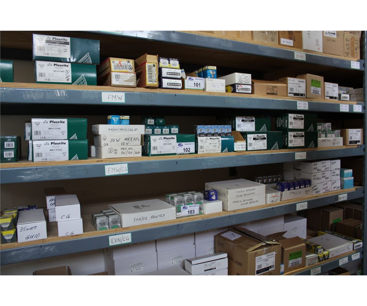 SHELF OF ASSORTED LIGHTING PRODUCT ( LOCATED ON EZ-RECT SHELVING )