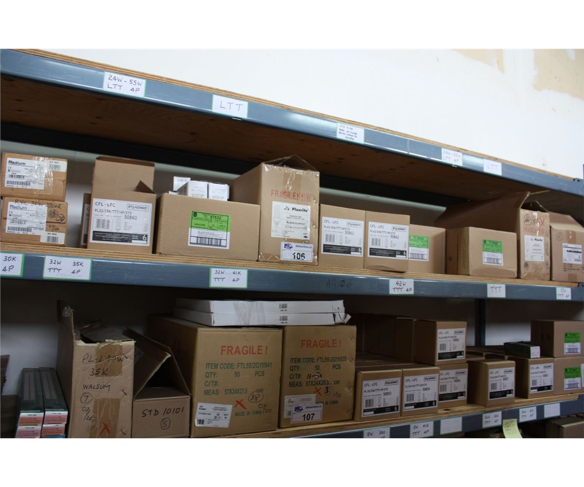 SHELF OF ASSORTED LIGHTING PRODUCT ( LOCATED ON EZ-RECT SHELVING )