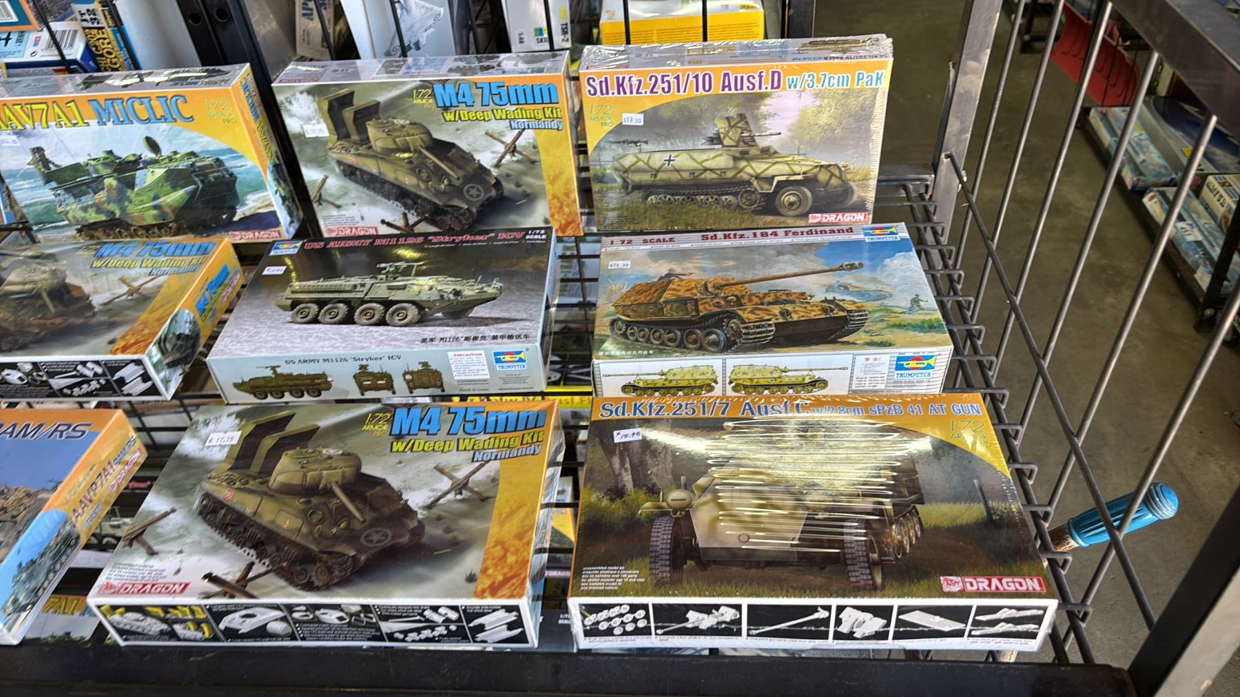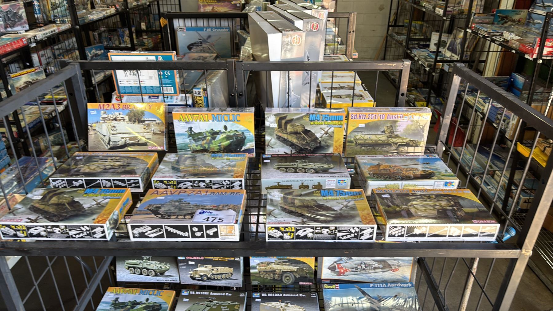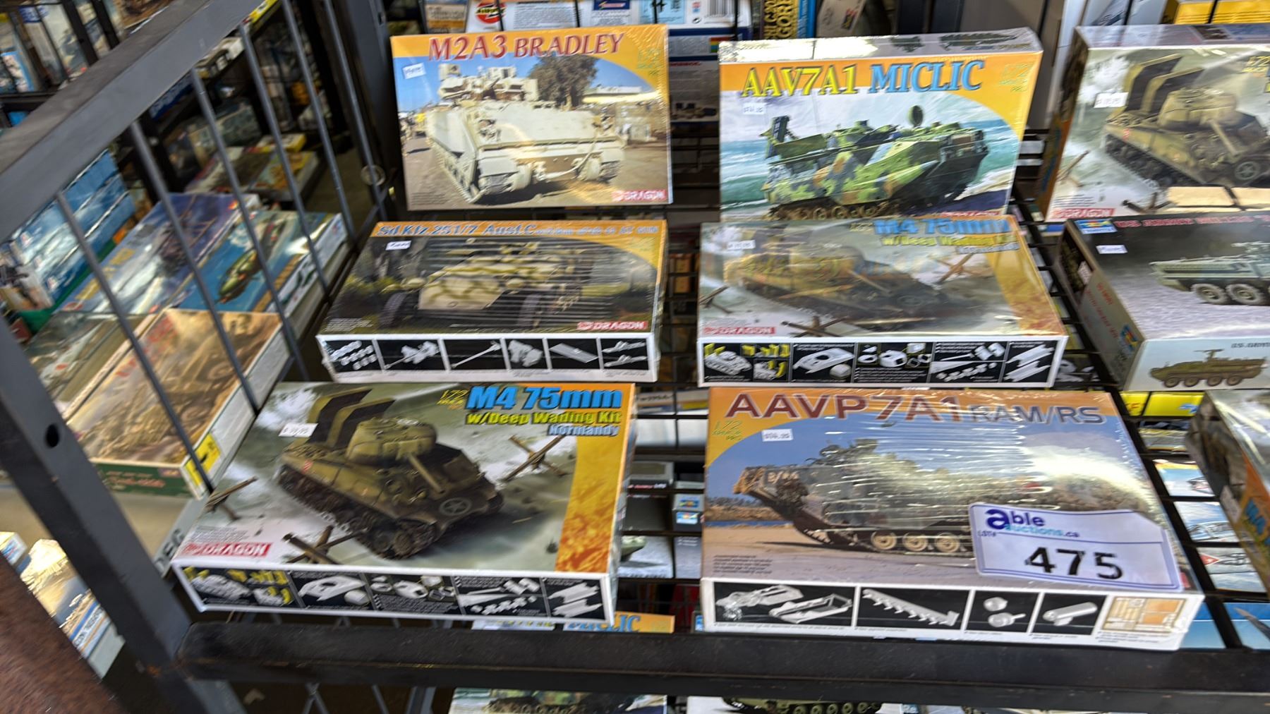 SHELF OF ASSORTED MILITARY TANK MODEL KITS