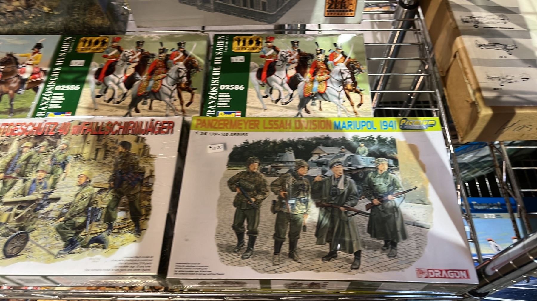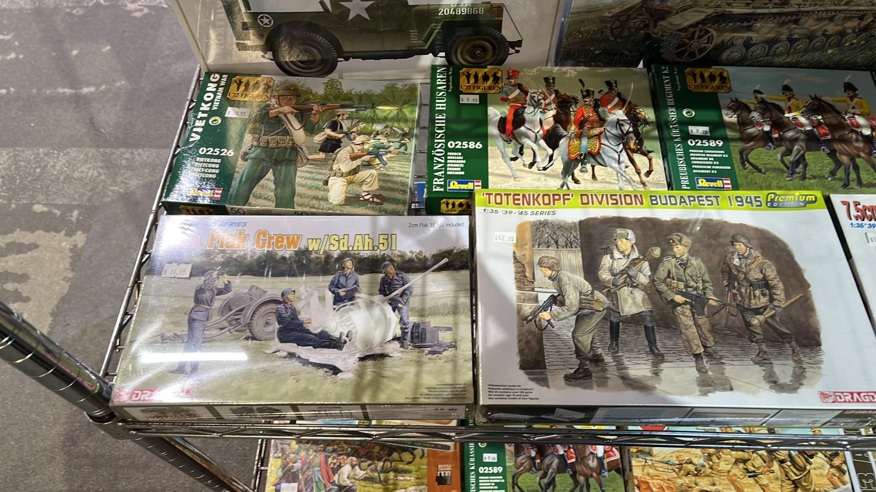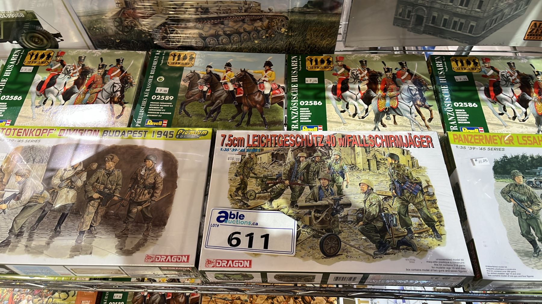 SHELF OF ASSORTED MILITARY VEHICLE & MILITARY FIGURE MODEL KITS