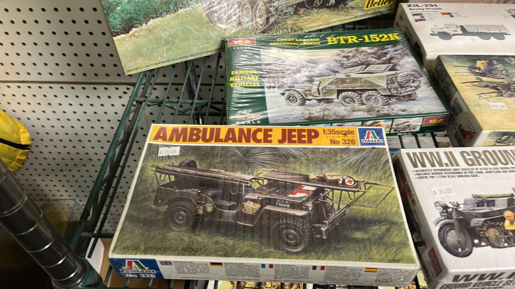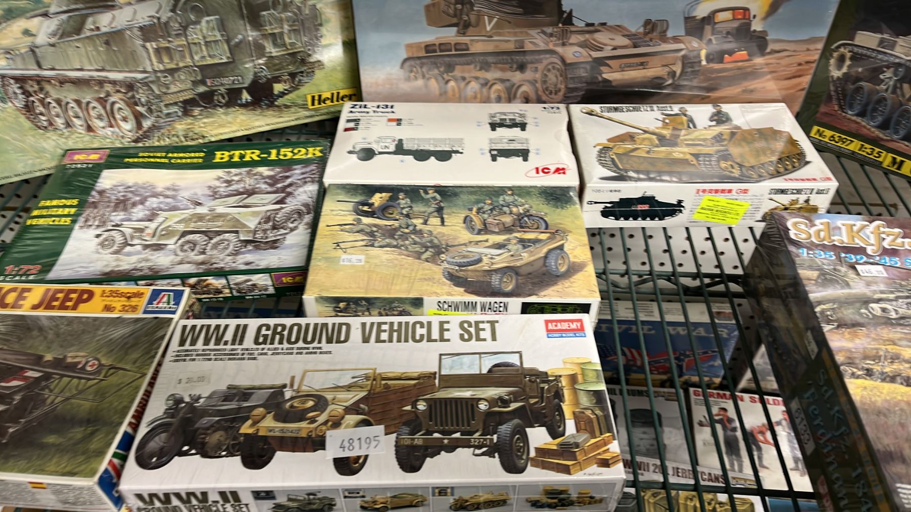 SHELF OF ASSORTED MILITARY VEHICLE MODEL KITS
