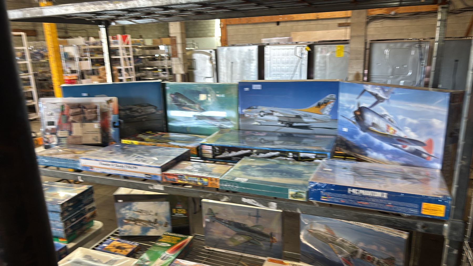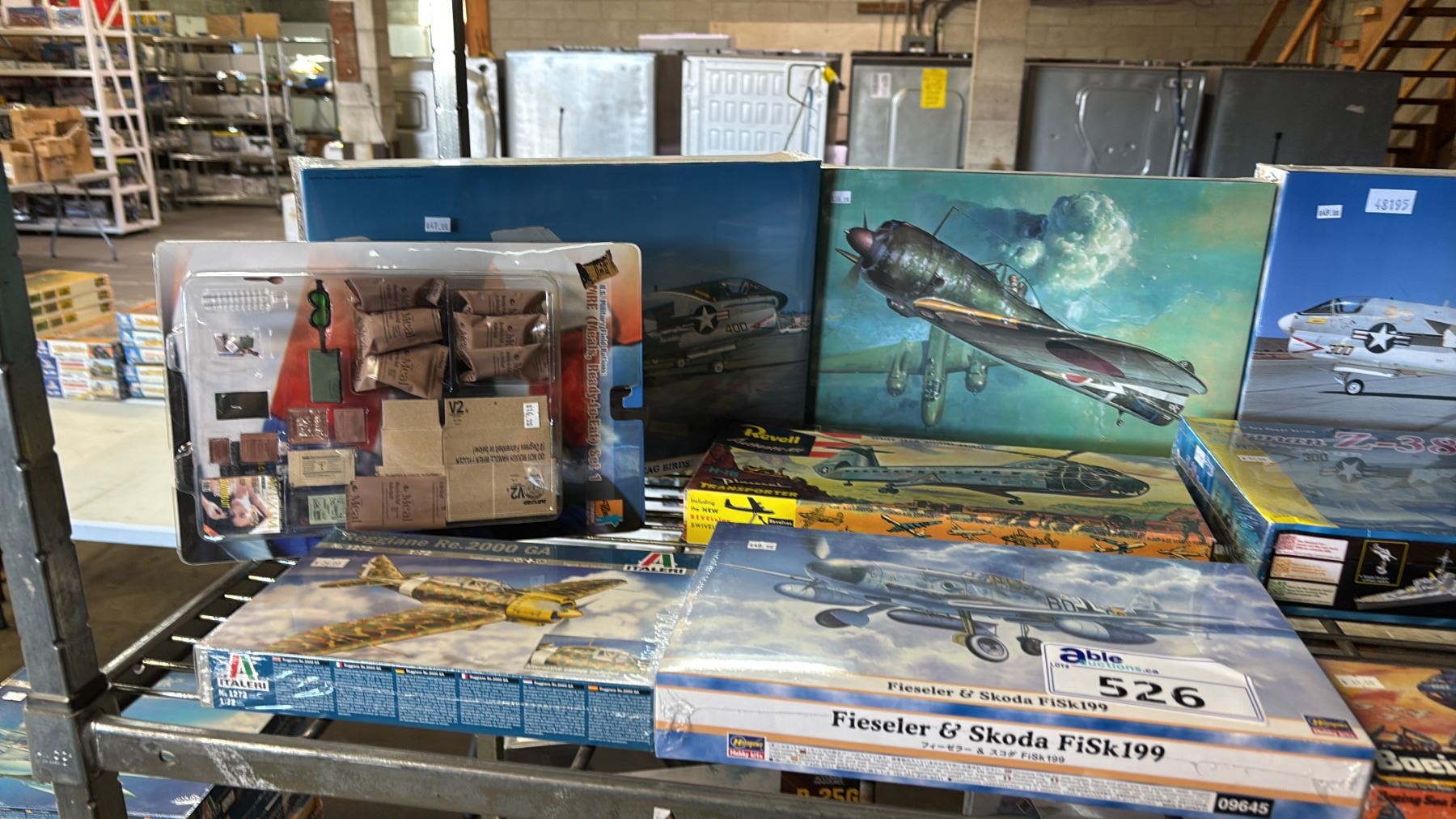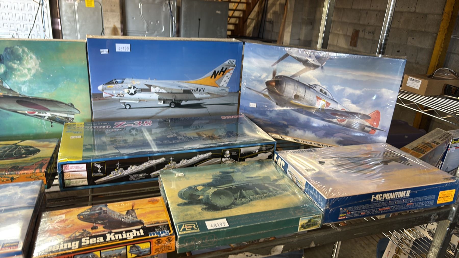 SHELF OF ASSORTED MODEL KITS: AIRCRAFT, SHIP, TANK & MORE