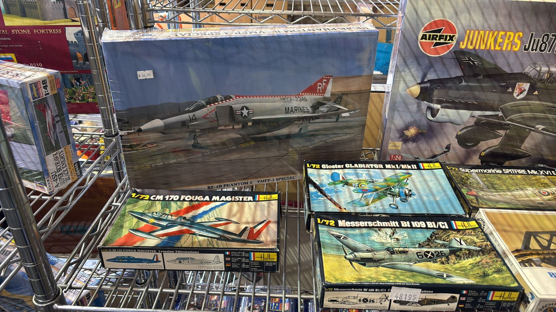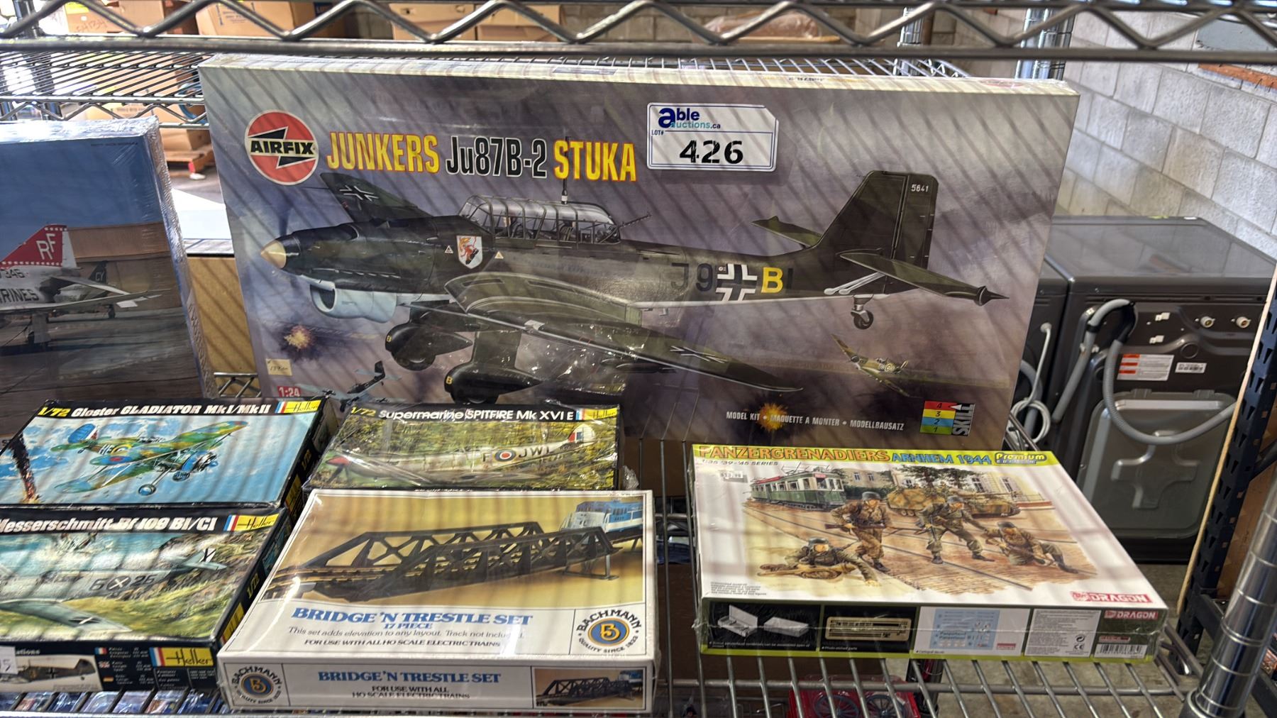 SHELF OF ASSORTED MODEL KITS: AIRPLANES, BRIDGE 'N TRESTLE SET & PANZERGRENADIERS ARNHEM 1944