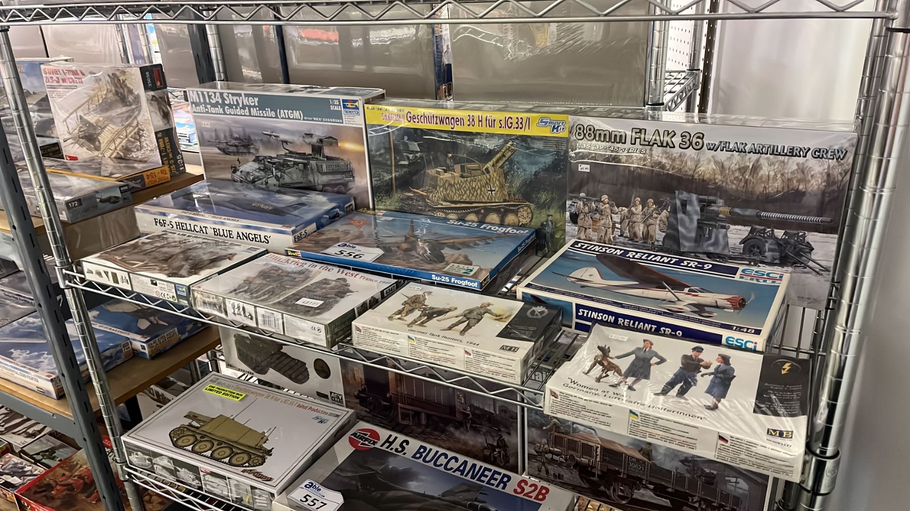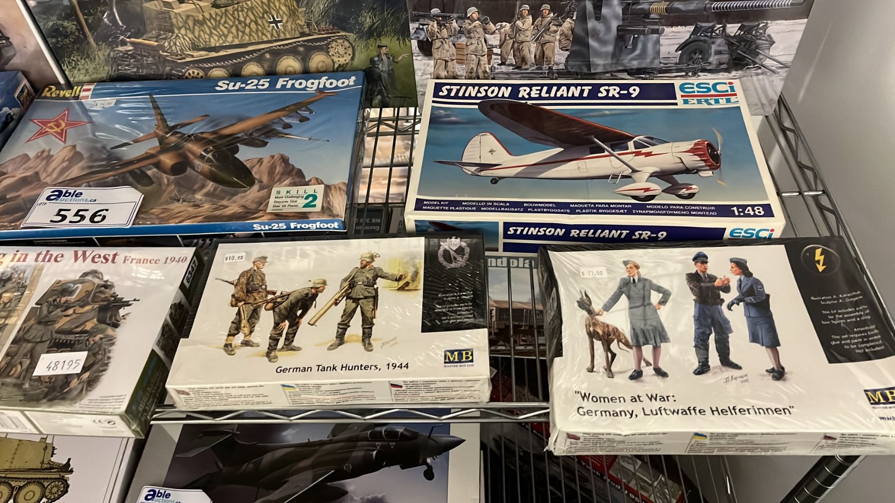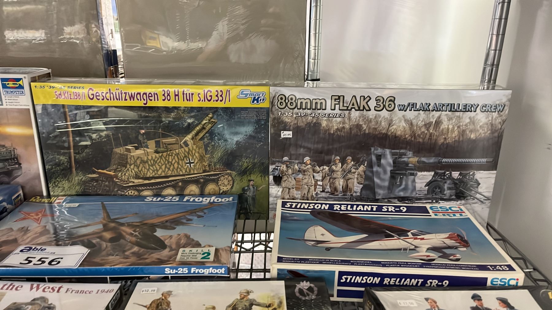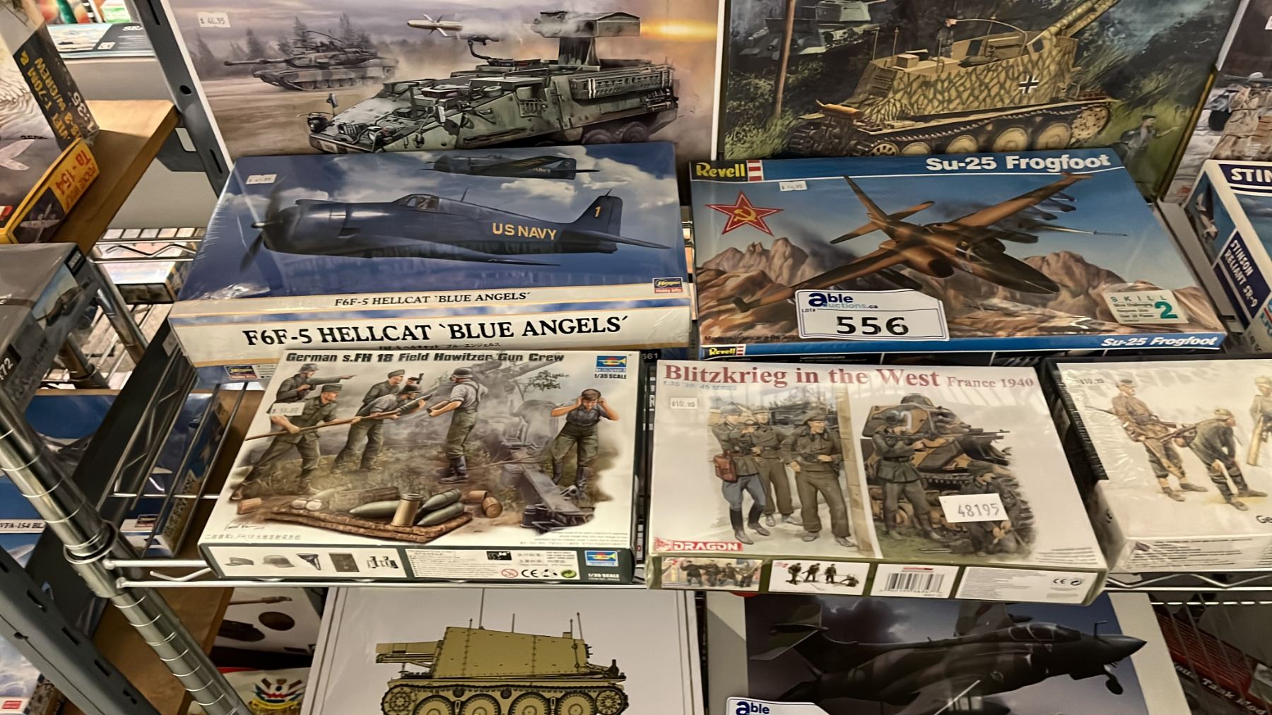 SHELF OF ASSORTED MODEL KITS: AIRPLANES, TANKS & ASSORTED FIGURE KITS
