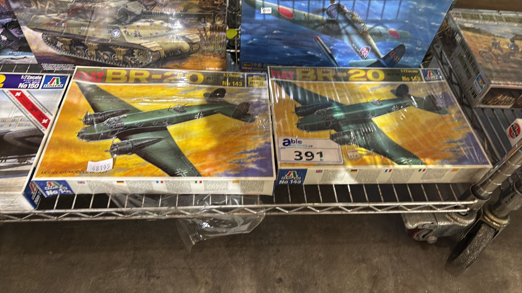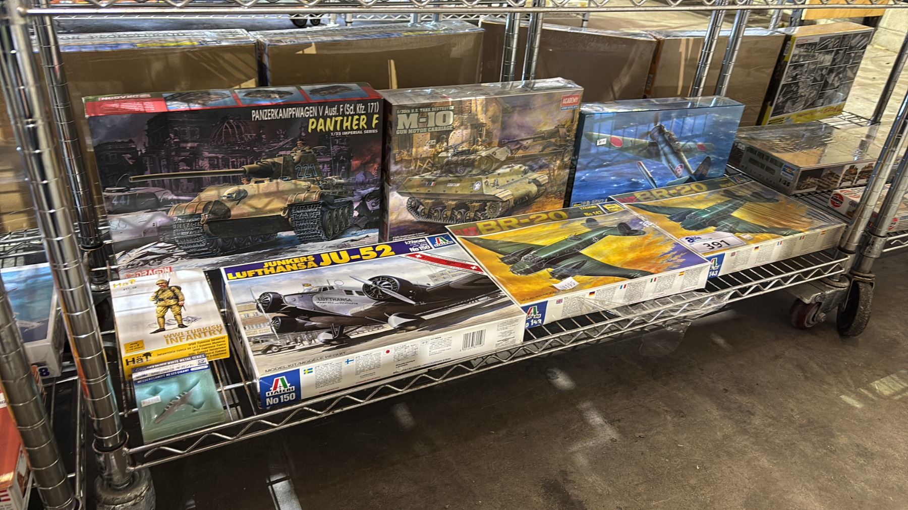 SHELF OF ASSORTED MODEL KITS: AIRPLANES, TANKS & MILITARY FIGURES