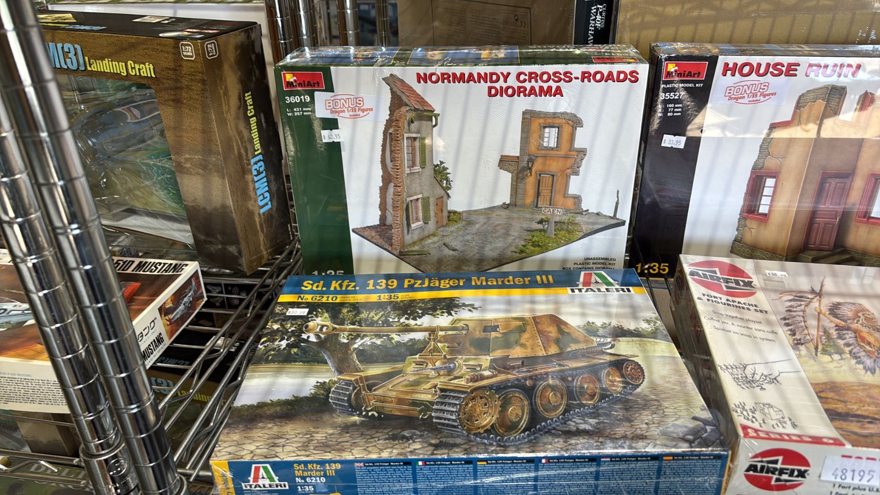 SHELF OF ASSORTED MODEL KITS & DIORAMAS
