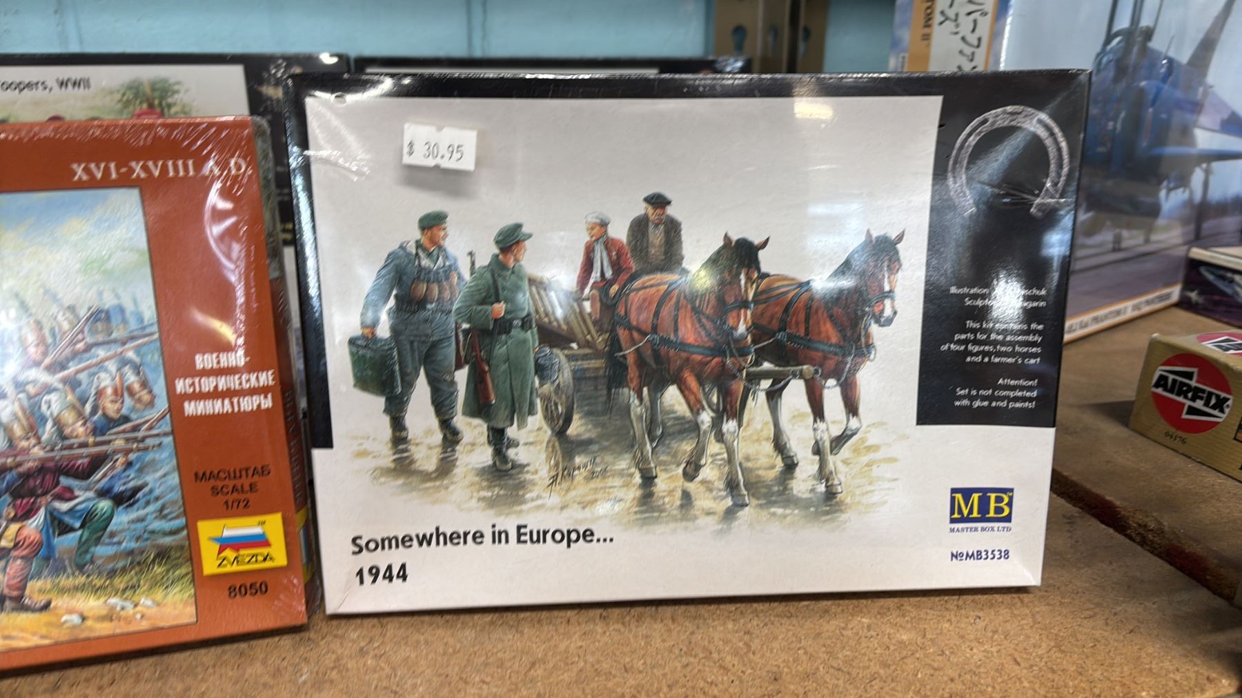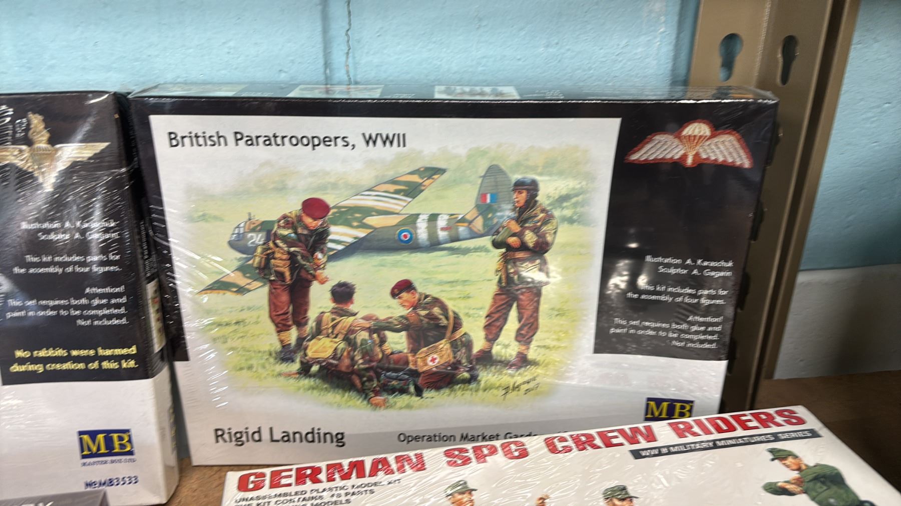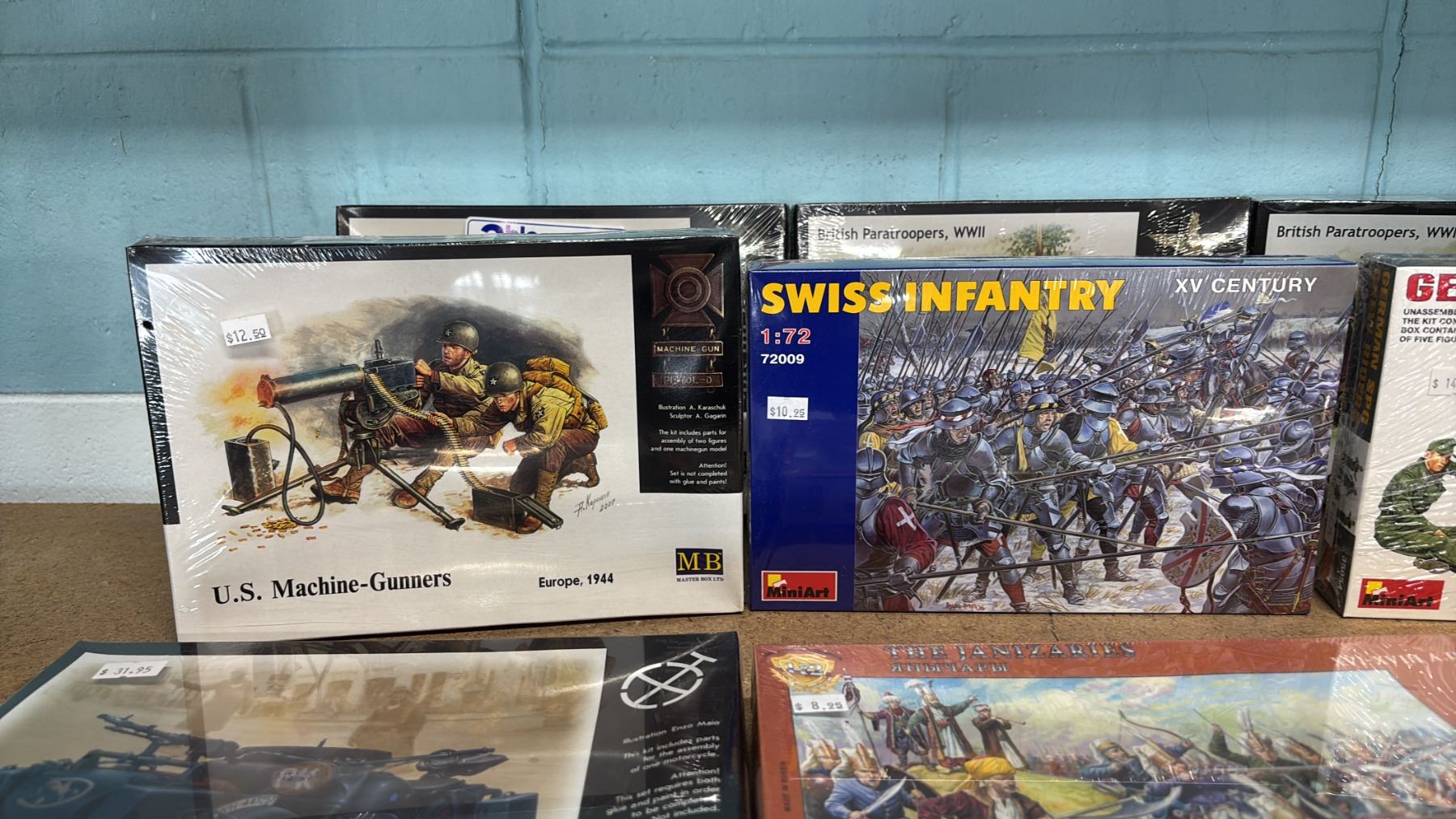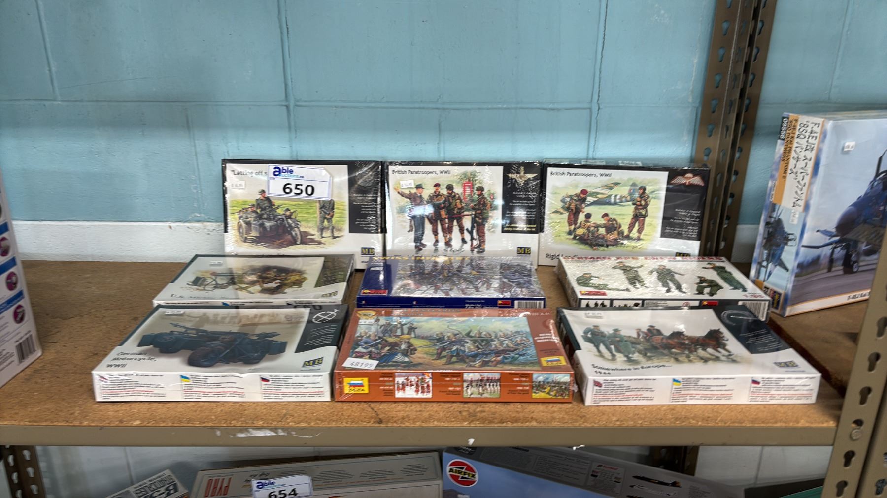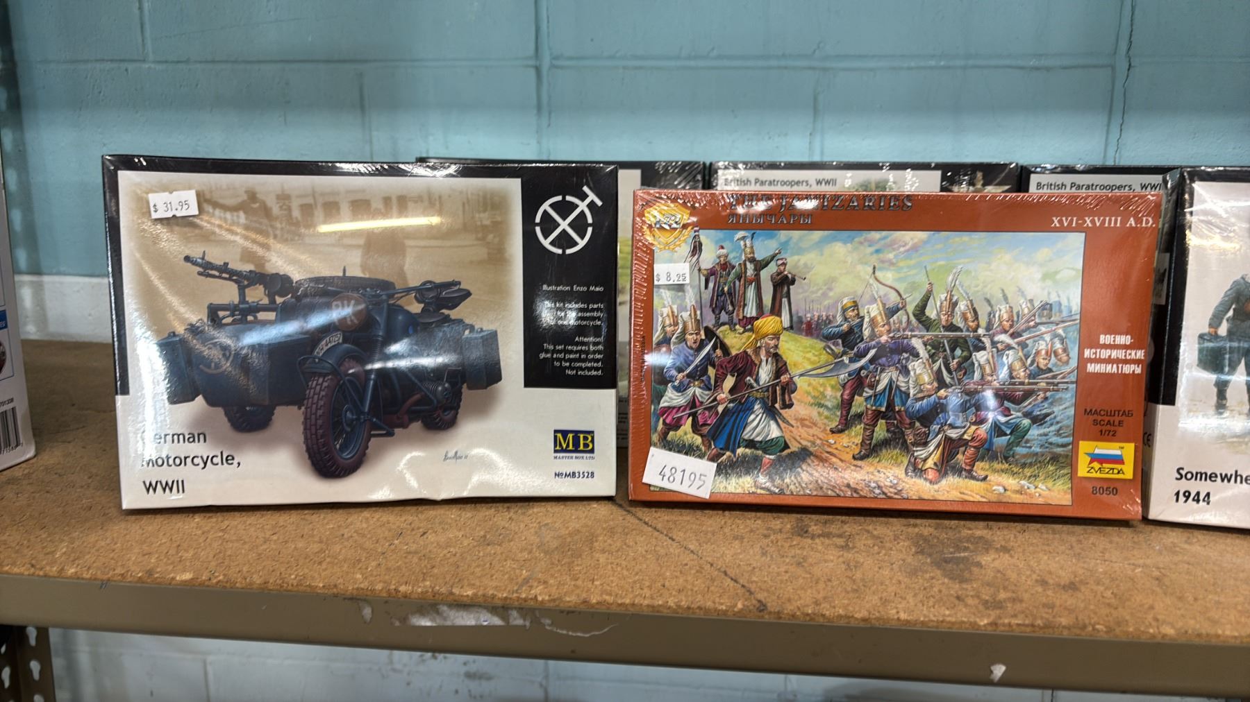 SHELF OF ASSORTED MODEL KITS: MILITARY VEHICLES & FIGURE SETS