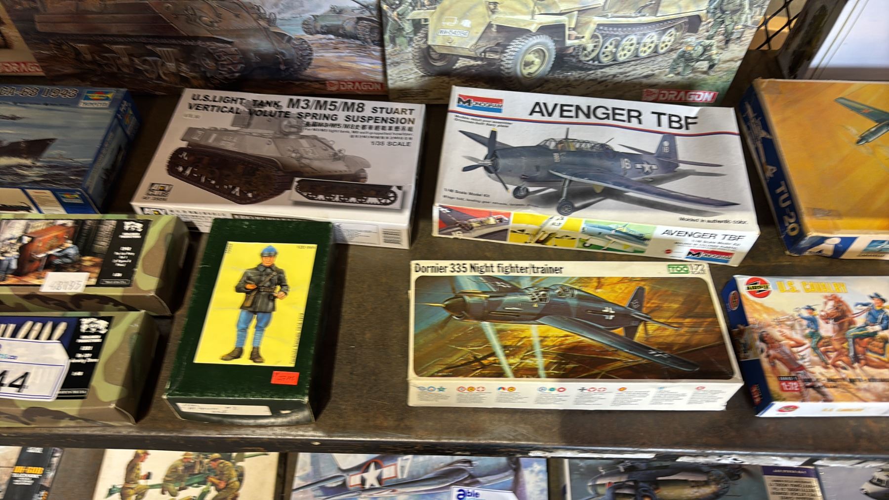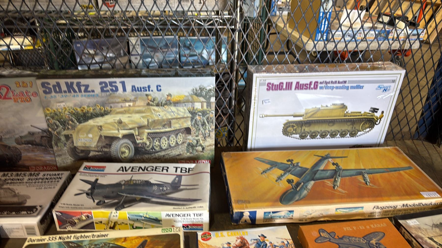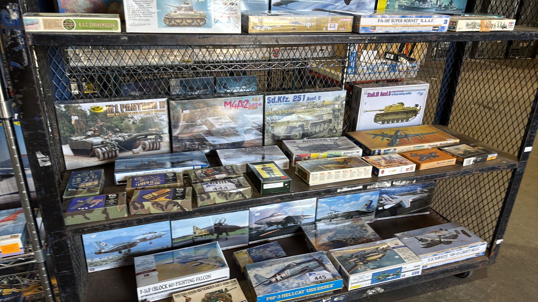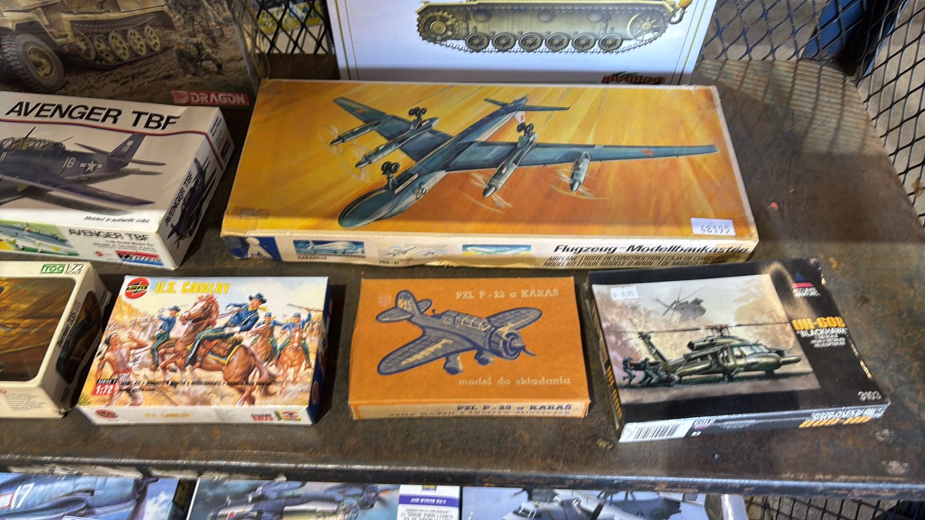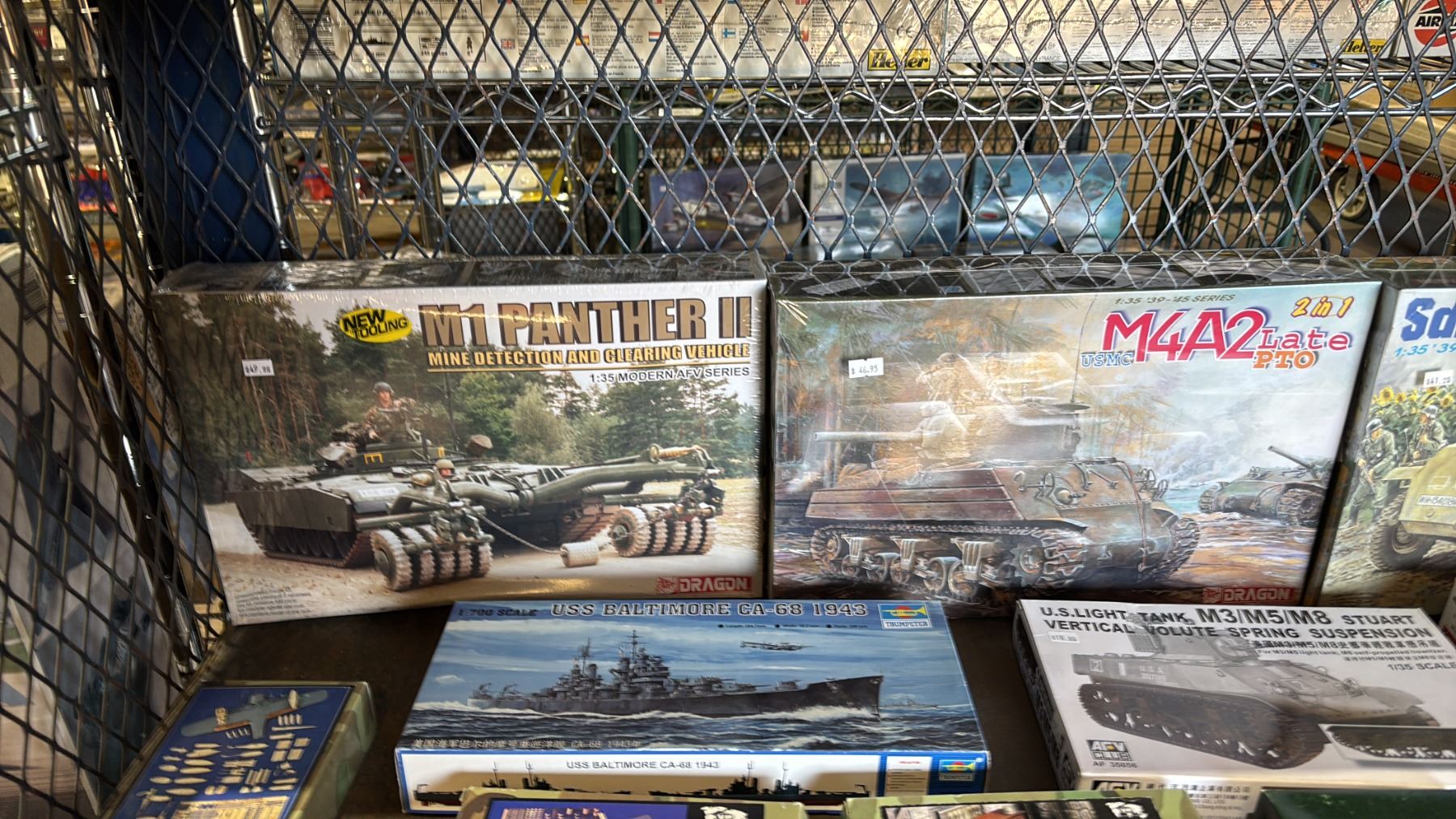 SHELF OF ASSORTED MODEL KITS: TANKS, AIRPLANES, BOAT & MORE