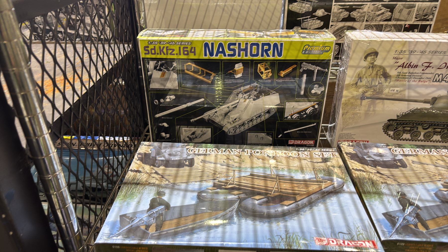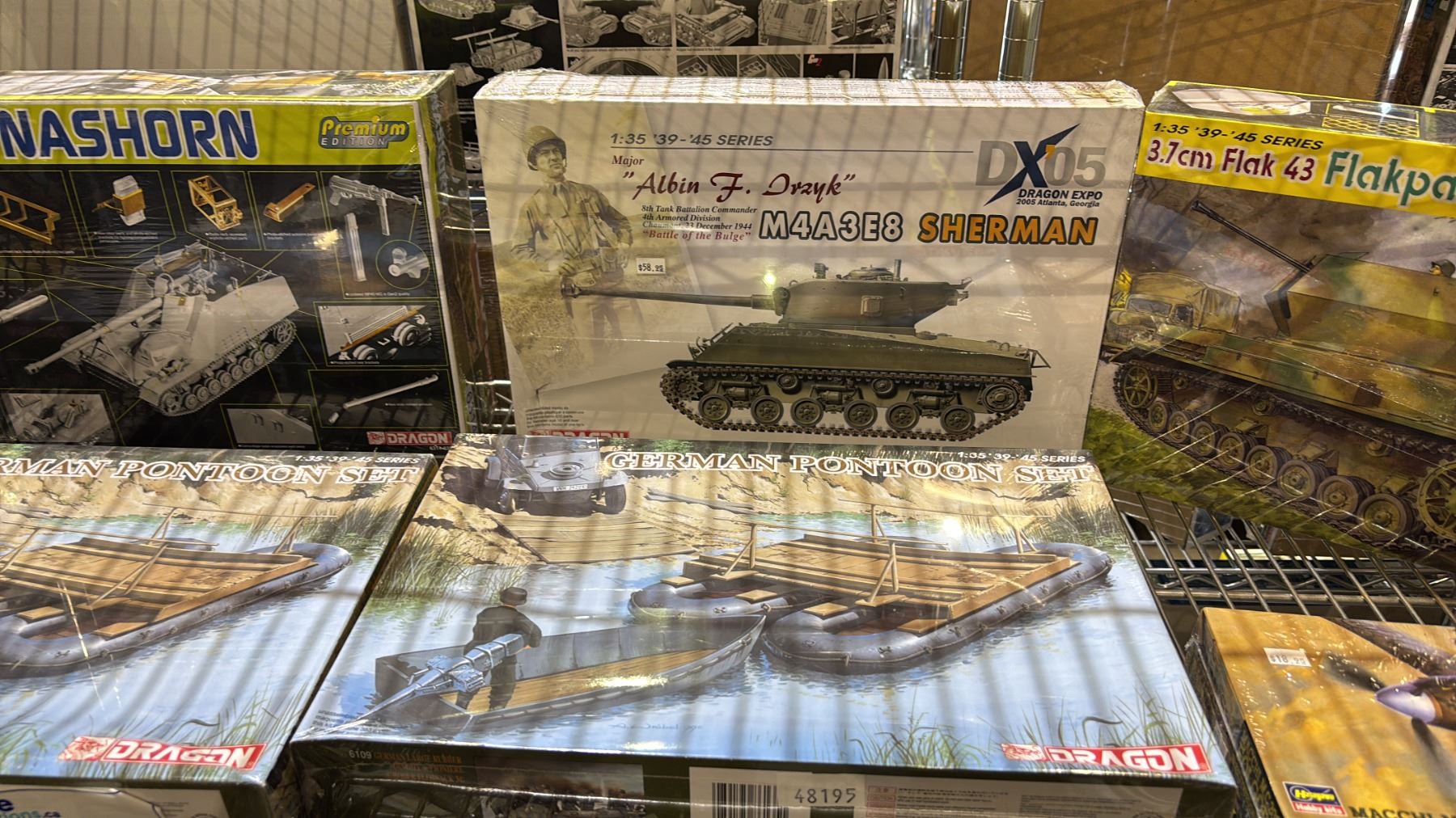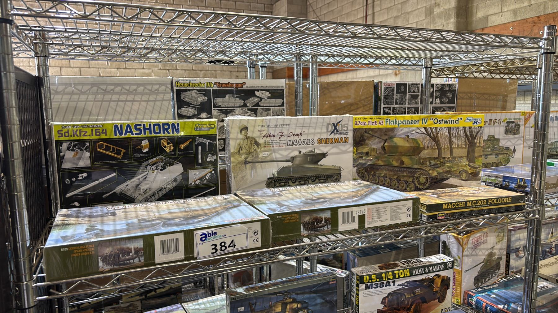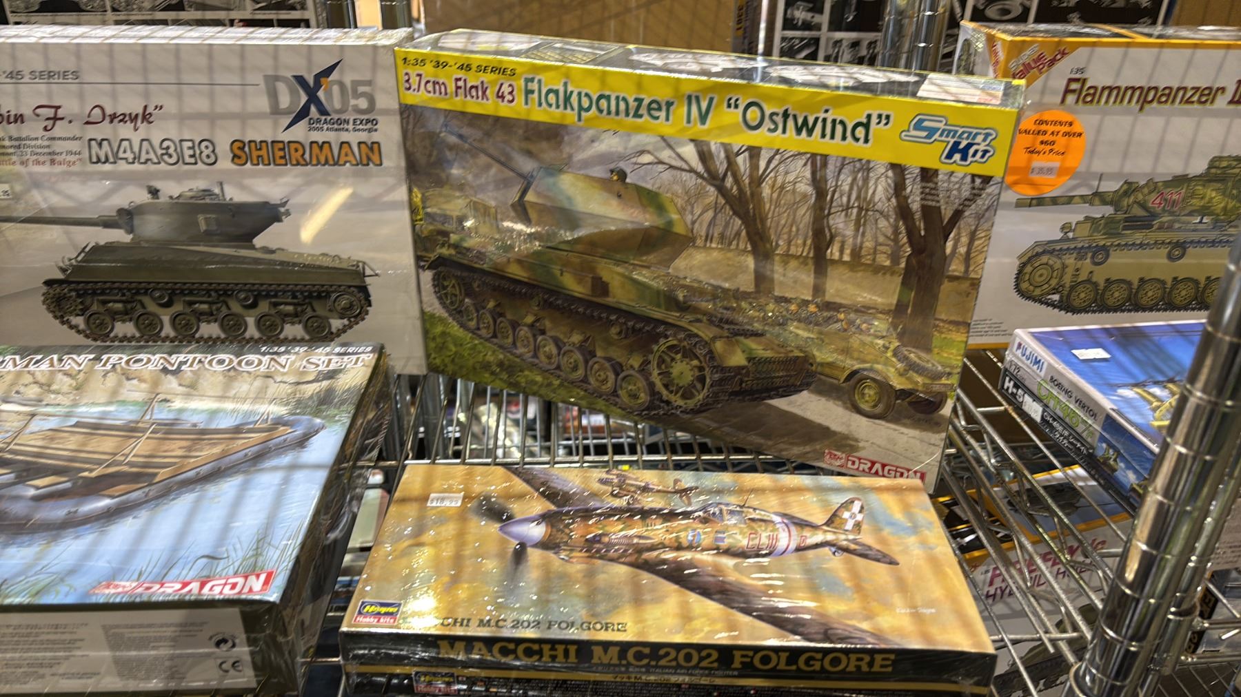 SHELF OF ASSORTED MODEL TANKS, PONTOON SETS & A MACCHI M.C.202 FOLGORE