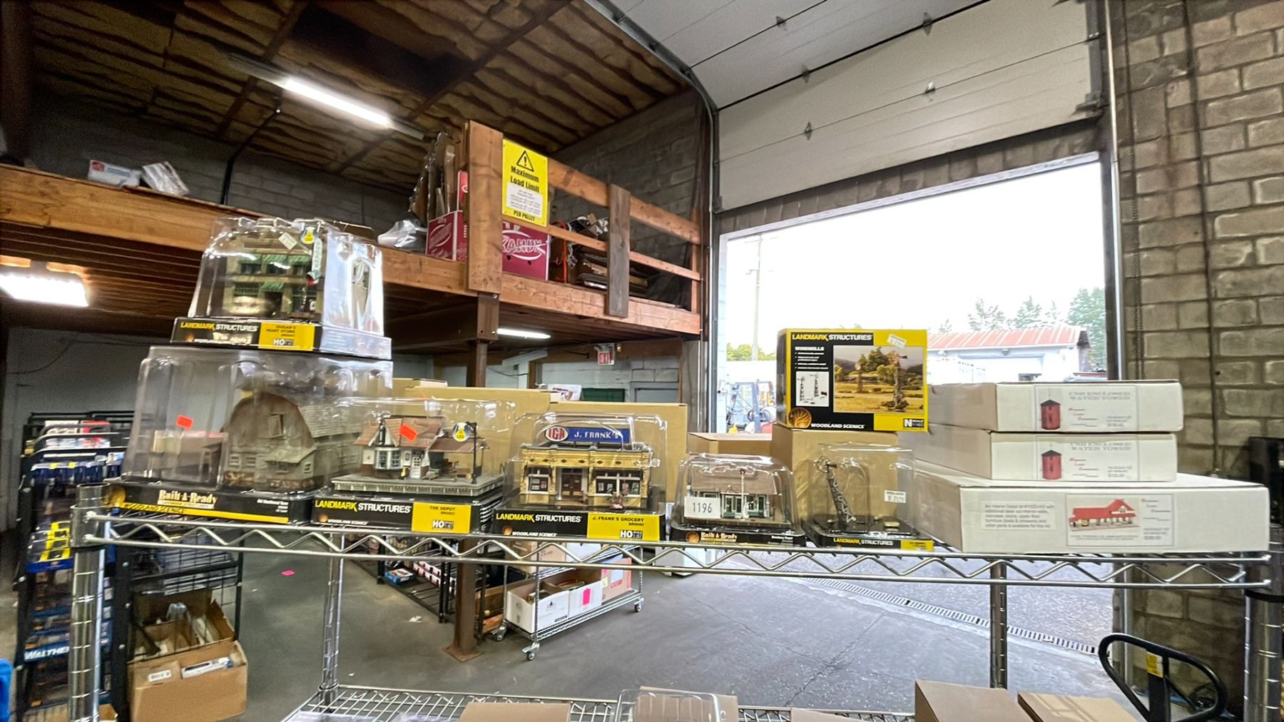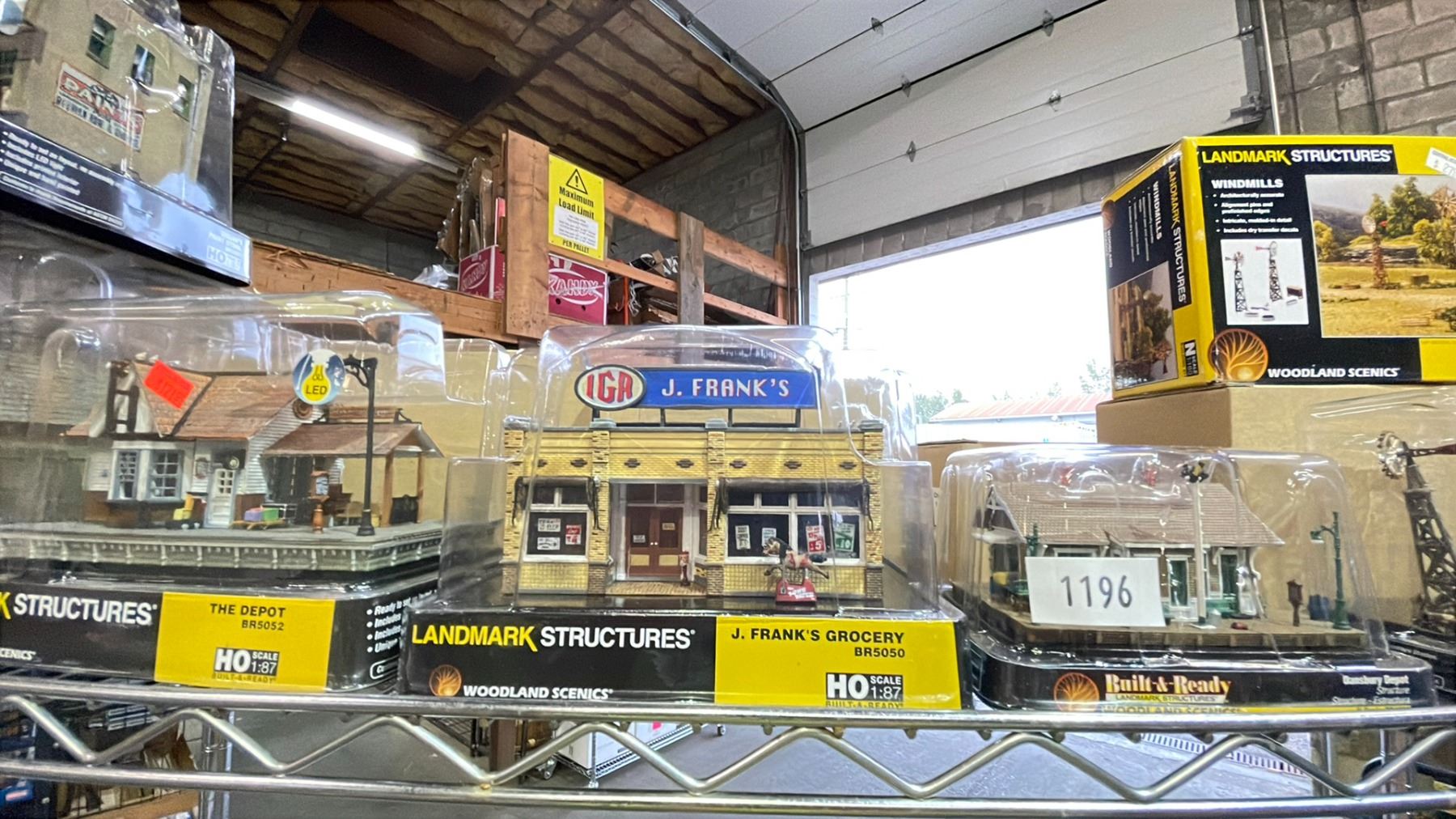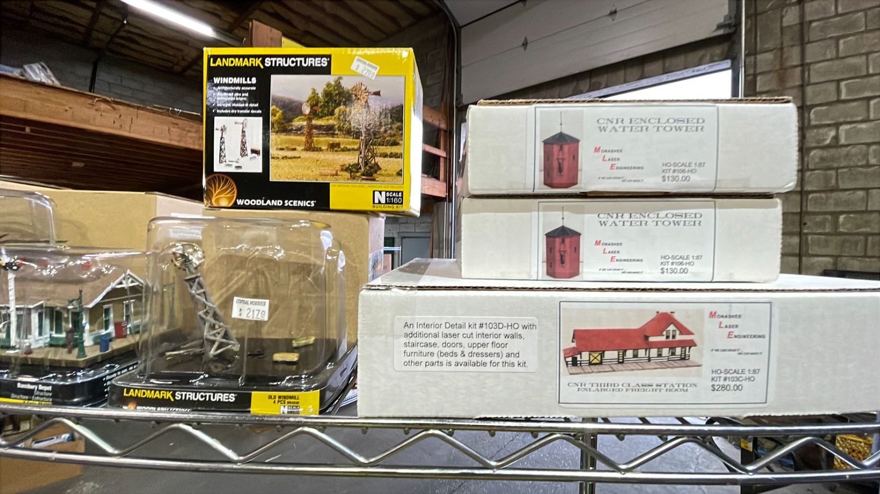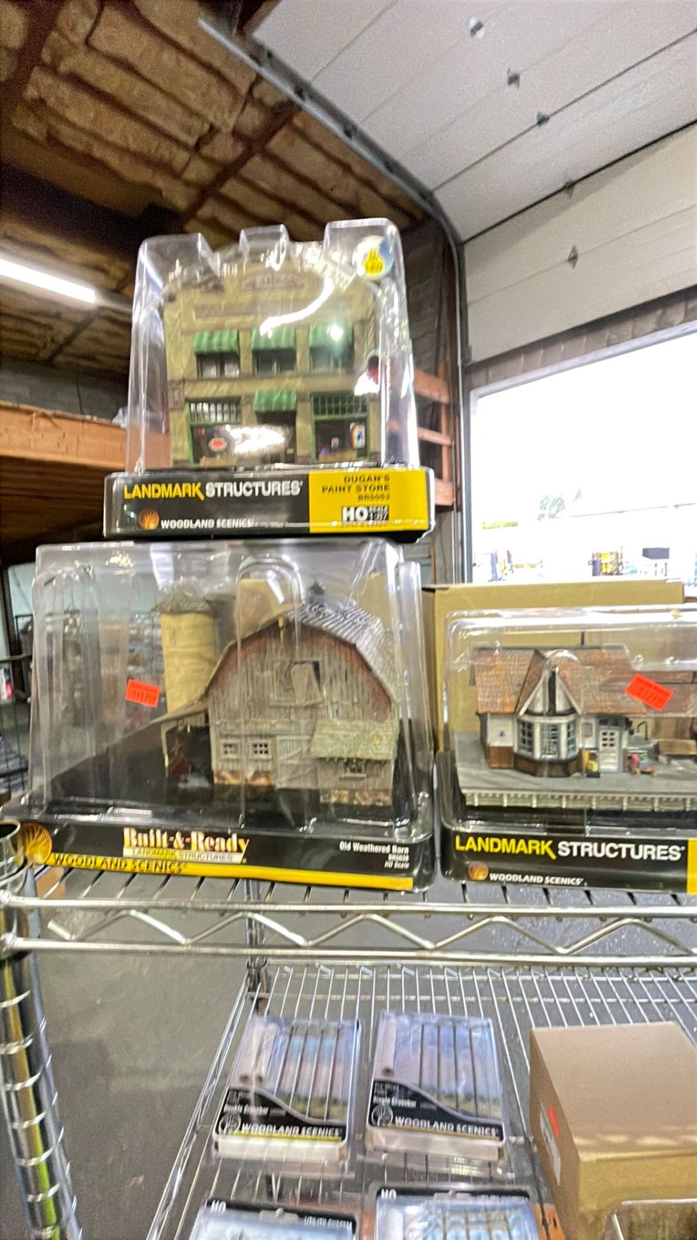 SHELF OF ASSORTED MODEL TRAIN STRUCTURES