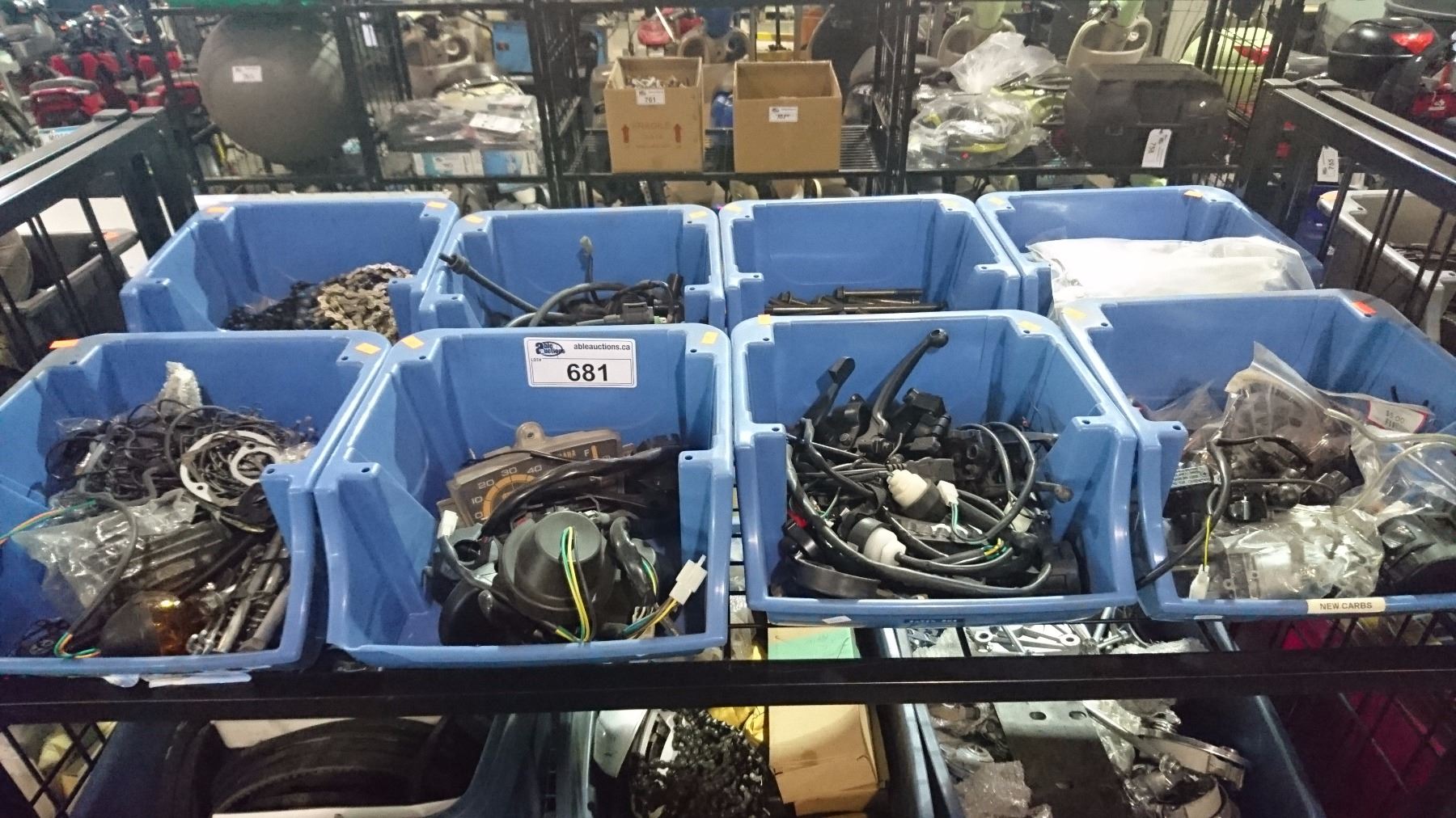 SHELF OF ASSORTED MOTORCYCLE/SCOOTER PARTS
